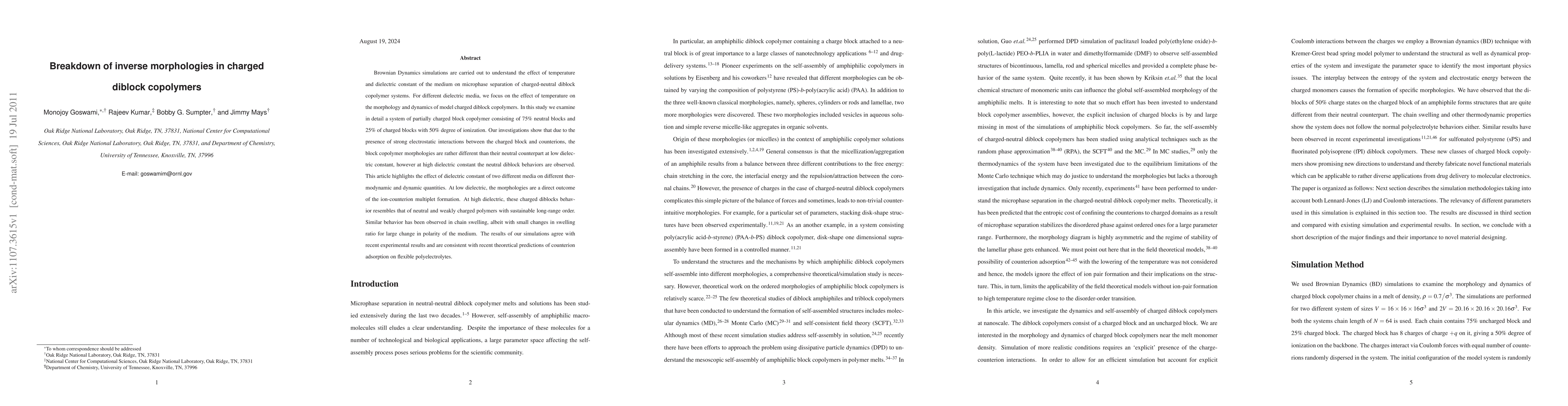 Researchers studied how temperature and dielectric constant affect charged diblock copolymers, finding that at low dielectric constants, strong electrostatic interactions dominate morphology, while high dielectric constants lead to neutral-like behavior.