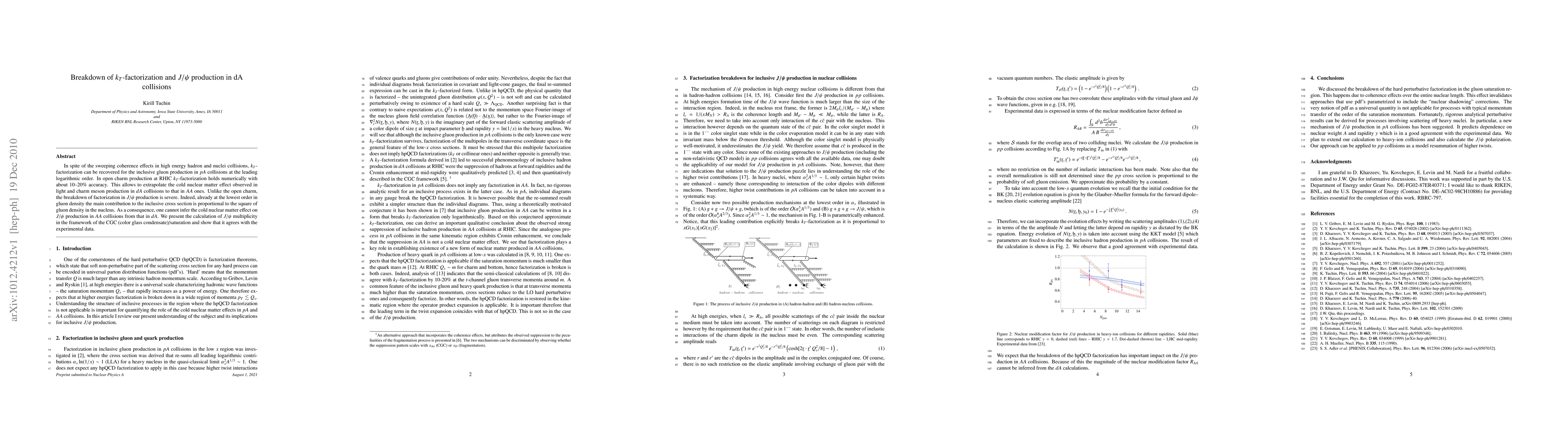 In spite of the sweeping coherence effects in high energy hadron and nuclei collisions, $k_T$-factorization can be recovered for the inclusive gluon production in $pA$ collisions at the leading logarithmic order. In open charm production at RHIC $k_T$-factorization holds numerically with about 10-20% accuracy. This allows to extrapolate the cold nuclear matter effect observed in light and charm meson production in $dA$ collisions to that in $AA$ ones. Unlike the open charm, the breakdown of factorization in $J/\psi$ production is severe. Indeed, already at the lowest order in gluon density the main contribution to the inclusive cross section is proportional to the square of gluon density in the nucleus. As a consequence, one cannot infer the cold nuclear matter effect on $J/\psi$ production in $AA$ collisions from that in $dA$. We present the calculation of $J/\psi$ multiplicity in the framework of the CGC (color glass condensate)/saturation and show that it agrees with the experimental data.