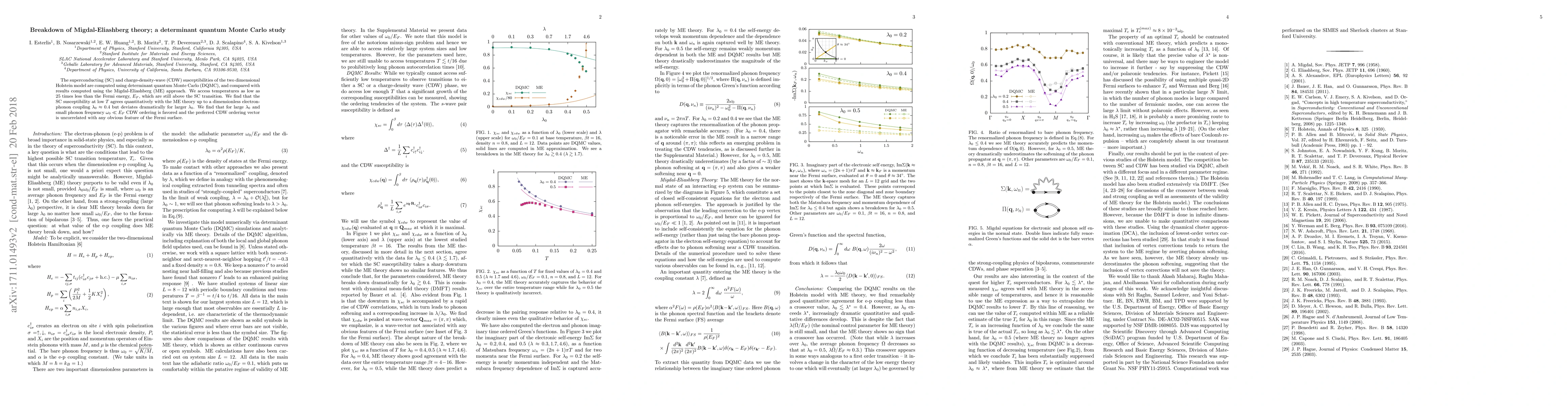 The superconducting (SC) and charge-density-wave (CDW) susceptibilities of the two dimensional Holstein model are computed using determinant quantum Monte Carlo (DQMC), and compared with results computed using the Migdal-Eliashberg (ME) approach. We access temperatures as low as 25 times less than the Fermi energy, $E_F$, which are still above the SC transition. We find that the SC susceptibility at low $T$ agrees quantitatively with the ME theory up to a dimensionless electron-phonon coupling $\lambda_0 \approx 0.4$ but deviates dramatically for larger $\lambda_0$. We find that for large $\lambda_0$ and small phonon frequency $\omega_0 \ll E_F$ CDW ordering is favored and the preferred CDW ordering vector is uncorrelated with any obvious feature of the Fermi surface.
