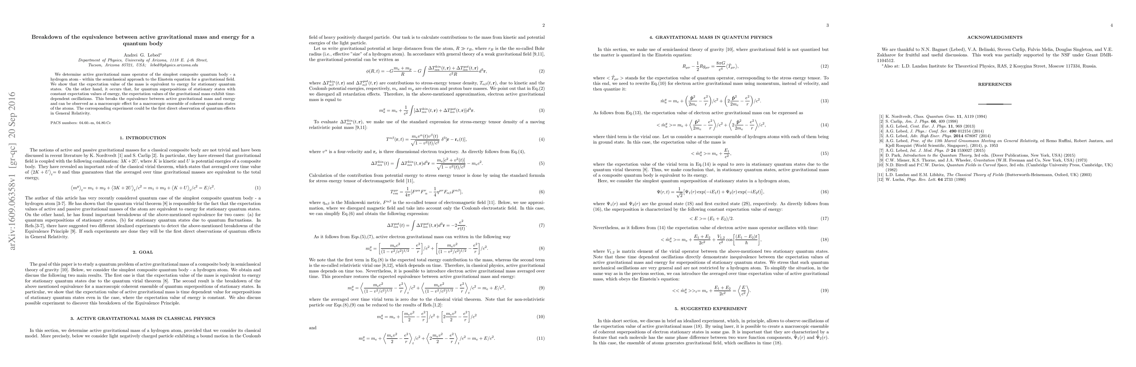 Researchers found that for stationary quantum states of a hydrogen atom, its gravitational mass is equivalent to energy, but for superpositions of these states, the gravitational mass exhibits time-dependent oscillations, breaking this equivalence.