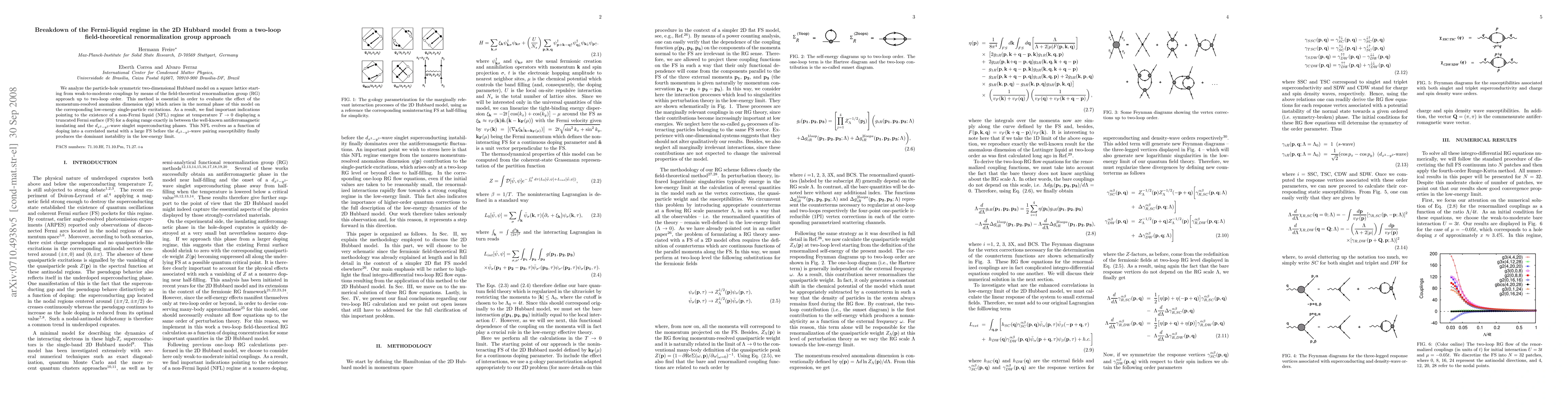 We analyze the particle-hole symmetric two-dimensional Hubbard model on a square lattice starting from weak-to-moderate couplings by means of the field-theoretical renormalization group (RG) approach up to two-loop order. This method is essential in order to evaluate the effect of the momentum-resolved anomalous dimension $\eta(\textbf{p})$ which arises in the normal phase of this model on the corresponding low-energy single-particle excitations. As a result, we find important indications pointing to the existence of a non-Fermi liquid (NFL) regime at temperature $T\to 0$ displaying a truncated Fermi surface (FS) for a doping range exactly in between the well-known antiferromagnetic insulating and the $d_{x^2-y^2}$-wave singlet superconducting phases. This NFL evolves as a function of doping into a correlated metal with a large FS before the $d_{x^2-y^2}$-wave pairing susceptibility finally produces the dominant instability in the low-energy limit.