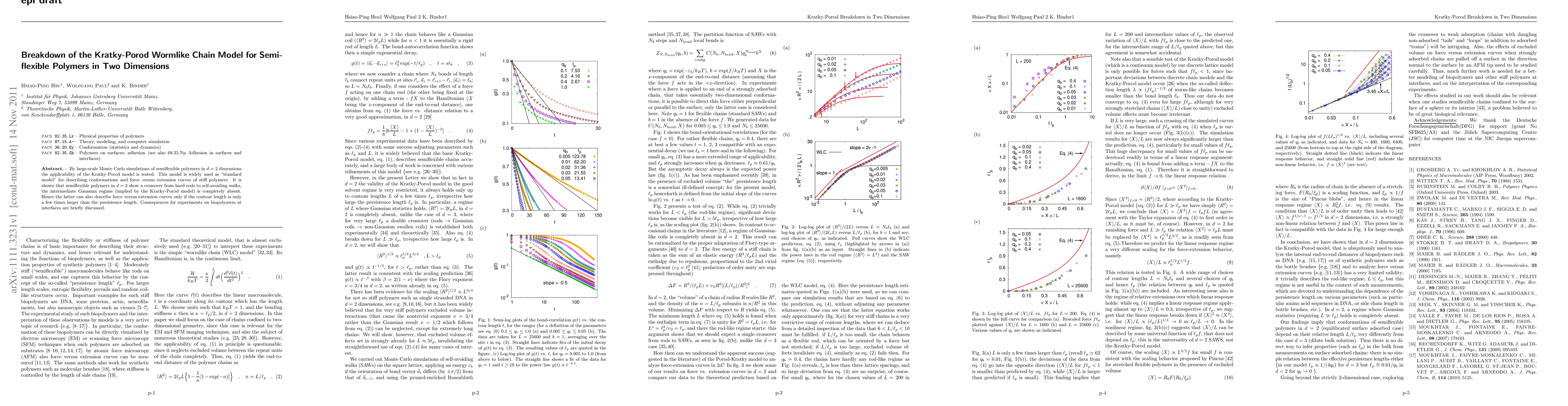 This paper uses Monte Carlo simulations to test the Kratky-Porod model for semiflexible polymers in two dimensions, finding that the model fails to capture the absence of the Gaussian regime and only accurately describes force versus extension curves when the contour length is small relative to the persistence length. Implications for biopolymer experiments at interfaces are also considered.