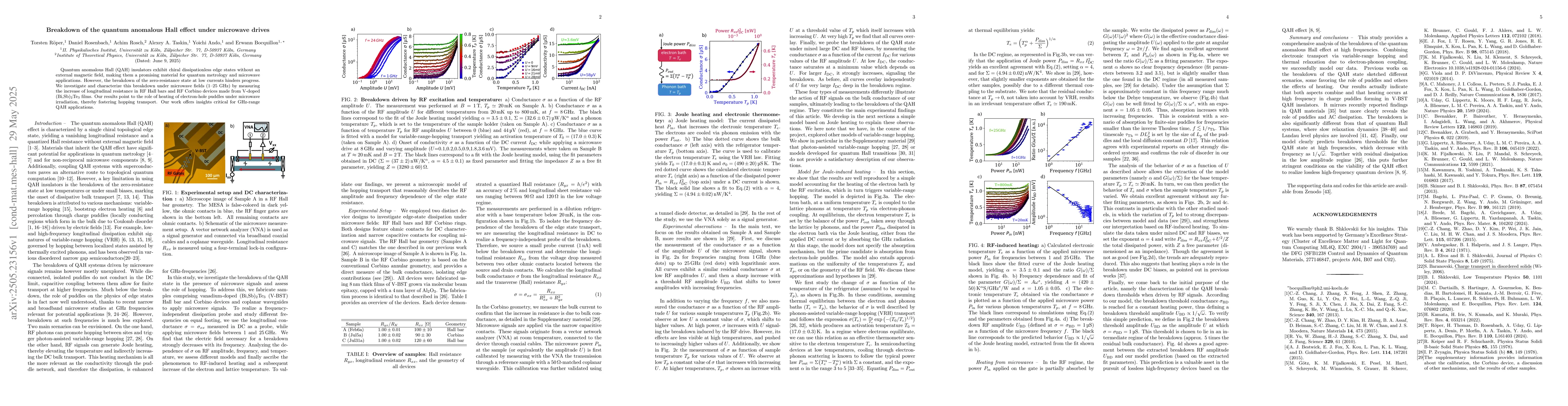The paper presents a comprehensive analysis of the breakdown of the Quantum Anomalous Hall effect at high frequencies, combining electronic transport via variable-range hopping and thermal relaxation due to electron-phonon coupling.