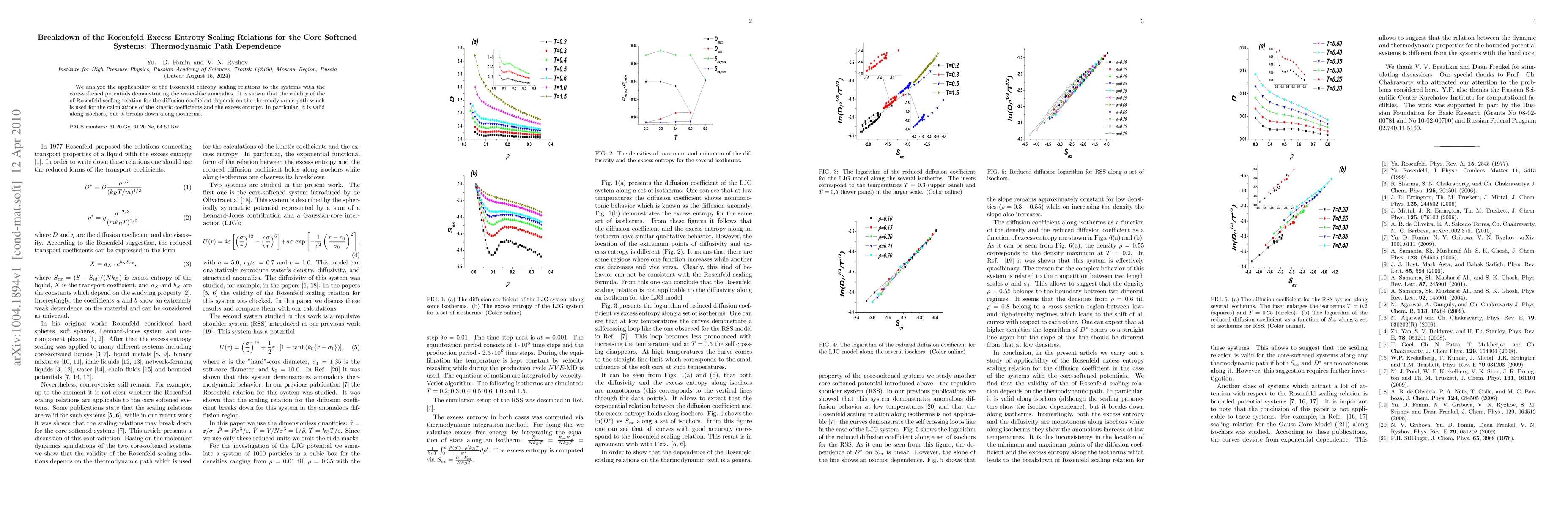 Summary: This study examines Rosenfeld entropy scaling relations for core-softened systems, revealing that the scaling's validity for diffusion coefficients hinges on the thermodynamic path used, holding true along isochors but failing along isotherms.
