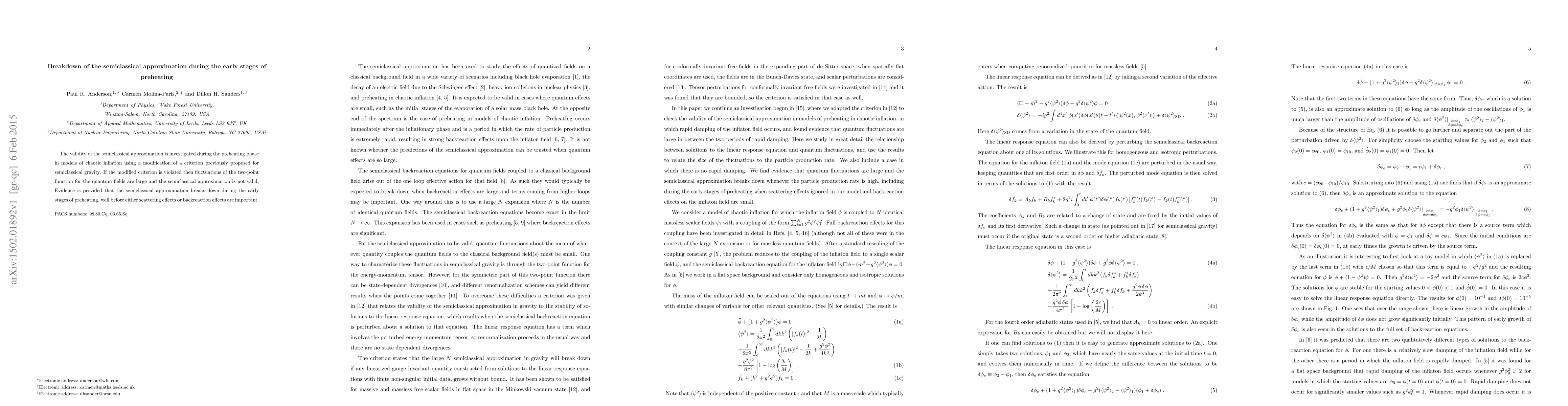 The paper investigates the breakdown of the semiclassical approximation during the early stages of preheating in chaotic inflation models. It finds that the approximation fails well before scattering or backreaction effects become significant, indicating large fluctuations in the quantum field's two-point function.