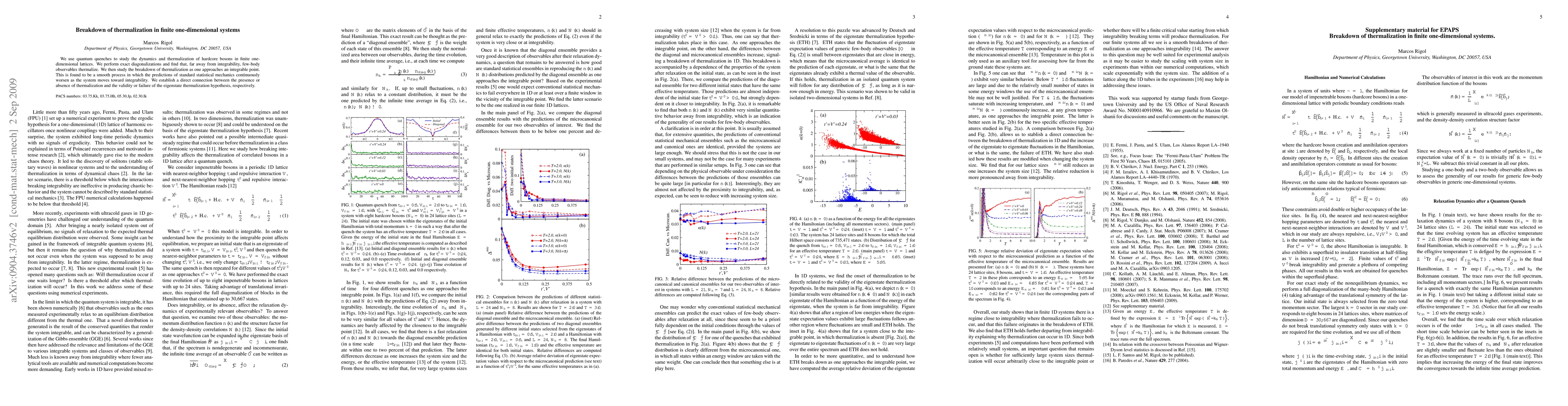 This paper investigates the dynamics and thermalization of hardcore bosons in finite one-dimensional lattices using quantum quenches. It finds that thermalization breaks down smoothly as the system approaches integrability, with standard statistical mechanics predictions worsening, and links this behavior to the eigenstate thermalization hypothesis.