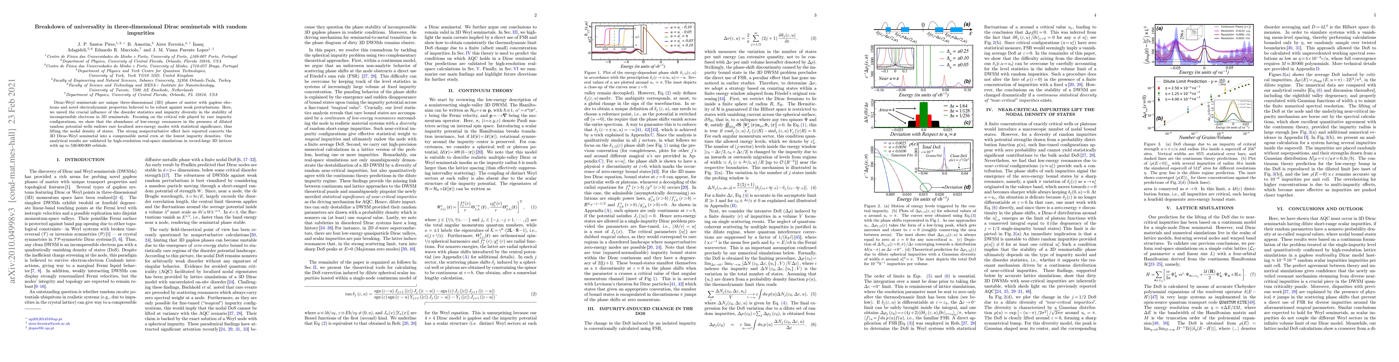 This paper investigates how random impurities affect the universality of three-dimensional Dirac semimetals, revealing that rare impurity configurations can create localized zero-energy modes, transforming the semimetal into a compressible metal even at low impurity densities. Analytical results are confirmed through extensive real-space simulations in large 3D lattices.