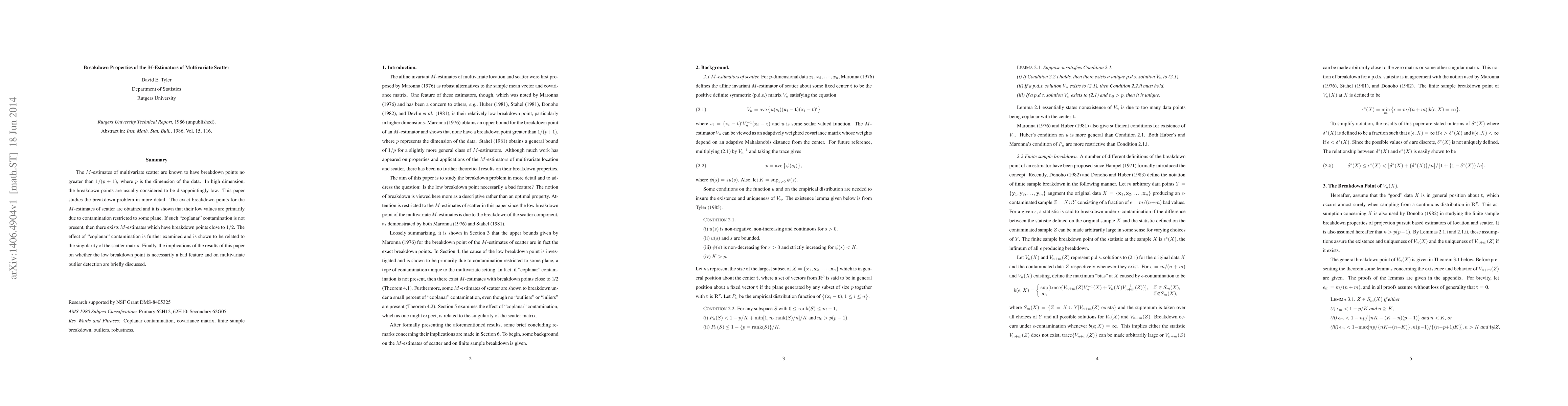 The paper derives exact breakdown points for M-estimators of multivariate scatter, revealing that low breakdown points are primarily due to coplanar contamination and showing the existence of M-estimators with breakdown points close to 1/2 in the absence of coplanar contamination.