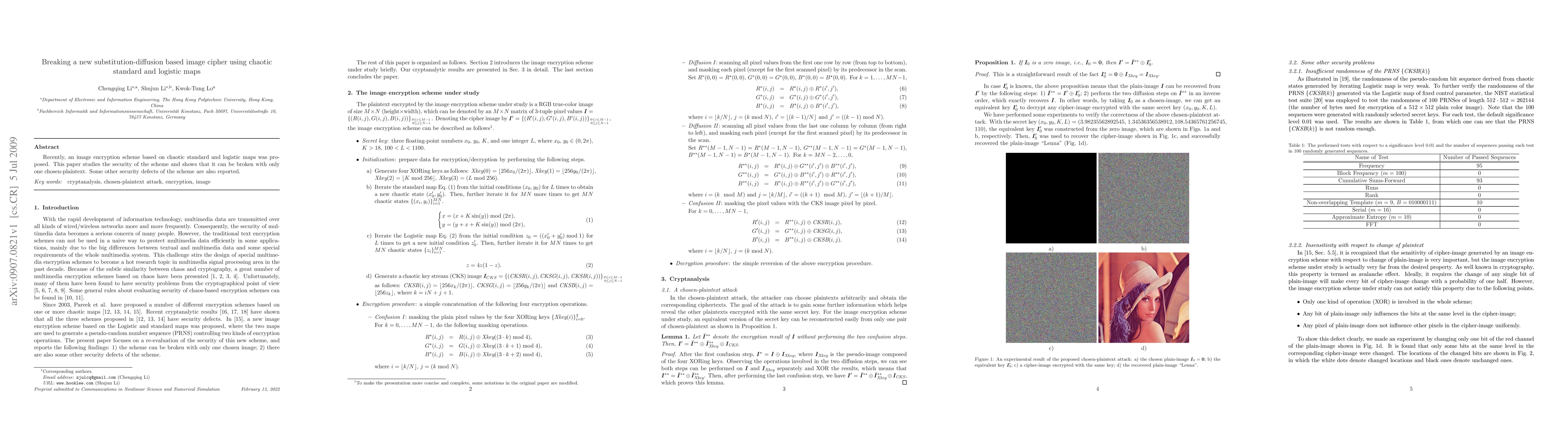 Summary: This paper demonstrates that a recently proposed image cipher using chaotic standard and logistic maps can be broken with just one chosen-plaintext, revealing additional security flaws in the encryption scheme.