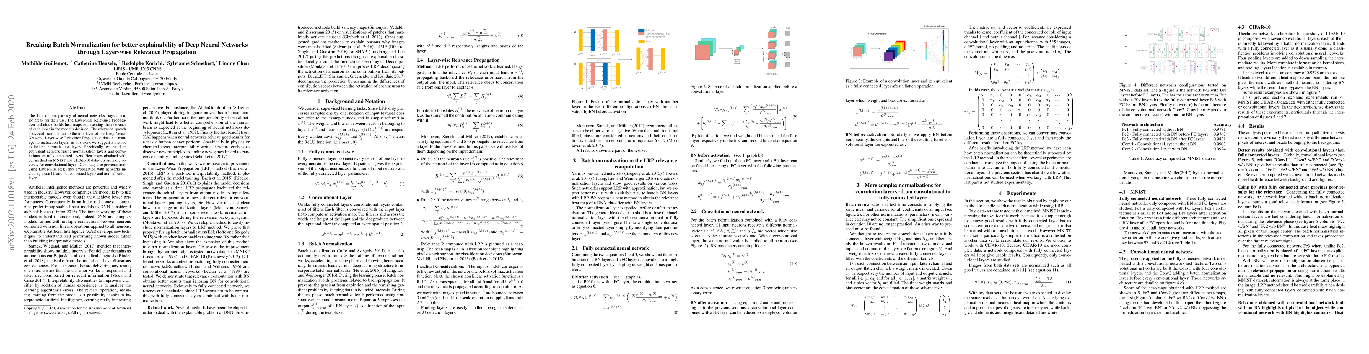 This paper proposes a method to enhance the explainability of deep neural networks by incorporating normalization layers into Layer-wise Relevance Propagation (LRP). The authors develop an equivalent network that fuses normalization layers with convolutional or fully connected layers, resulting in more accurate heatmaps for convolutional layers on MNIST and CIFAR-10 datasets.