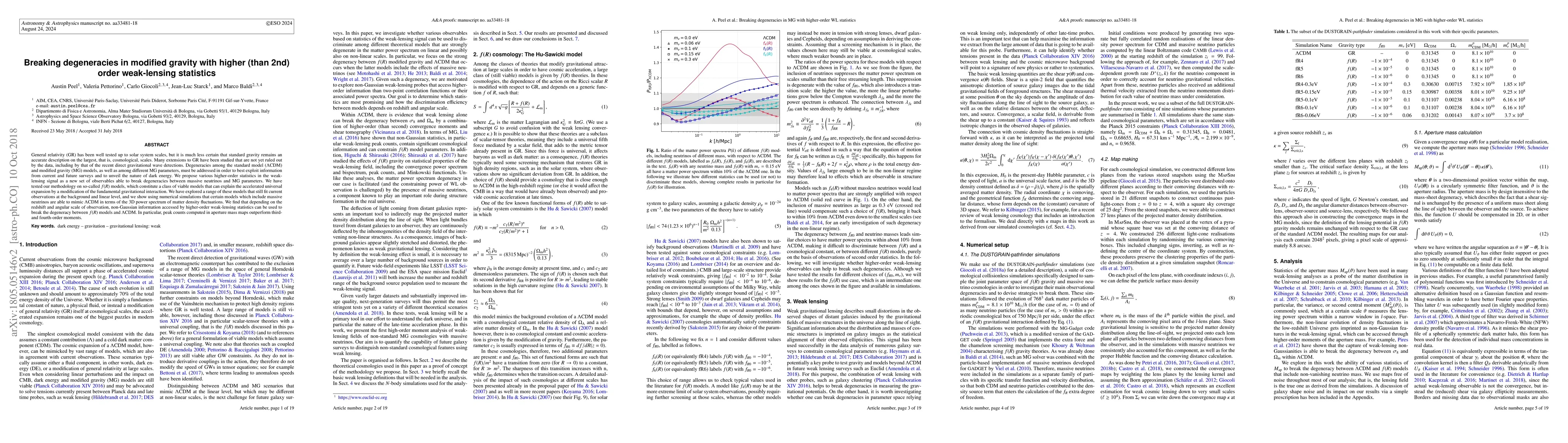 This paper proposes higher-order weak-lensing statistics to break degeneracies between modified gravity models and the standard $\Lambda$CDM model, particularly focusing on $f(R)$ gravity. It demonstrates that non-Gaussian information from higher-order statistics can distinguish between these models, with peak counts in aperture mass maps showing the most promise.