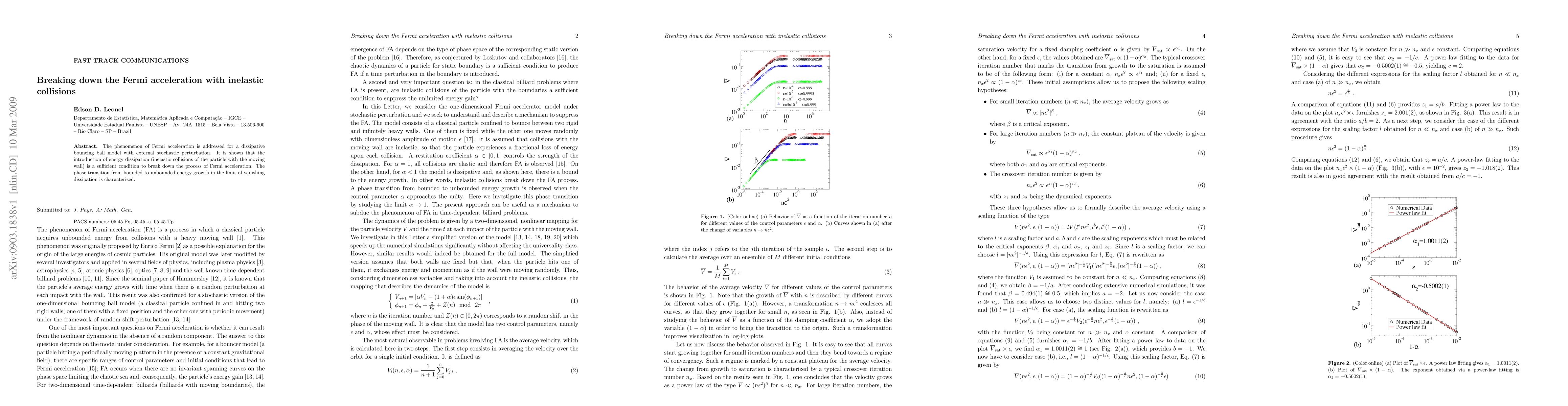 This research demonstrates that energy dissipation, through inelastic collisions, halts Fermi acceleration in a bouncing ball model subjected to stochastic perturbations. It also identifies a phase transition from limited to unlimited energy growth as dissipation approaches zero.