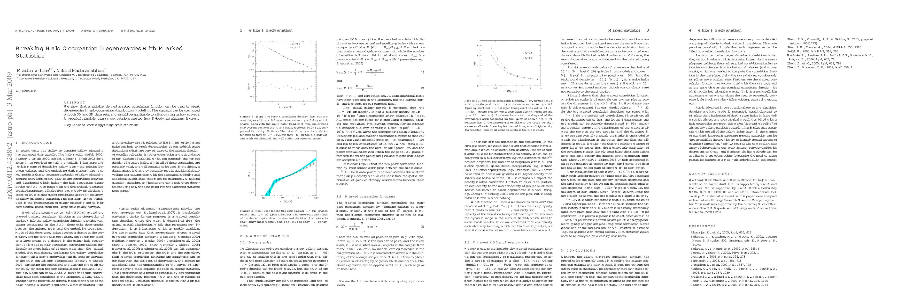 We show that a suitably defined marked correlation function can be used to break degeneracies in halo-occupation distribution modeling. The statistic can be computed on both 3D and 2D data sets, and should be applicable to all upcoming galaxy surveys. A proof of principle, using mock catalogs created from N-body simulations, is given.