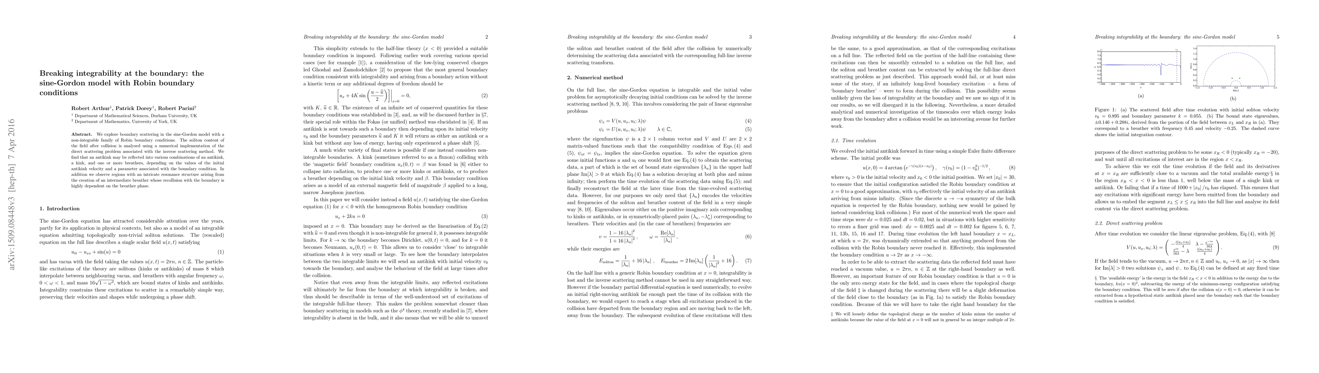 We explore boundary scattering in the sine-Gordon model with a non-integrable family of Robin boundary conditions. The soliton content of the field after collision is analysed using a numerical implementation of the direct scattering problem associated with the inverse scattering method. We find that an antikink may be reflected into various combinations of an antikink, a kink, and one or more breathers, depending on the values of the initial antikink velocity and a parameter associated with the boundary condition. In addition we observe regions with an intricate resonance structure arising from the creation of an intermediate breather whose recollision with the boundary is highly dependent on the breather phase.