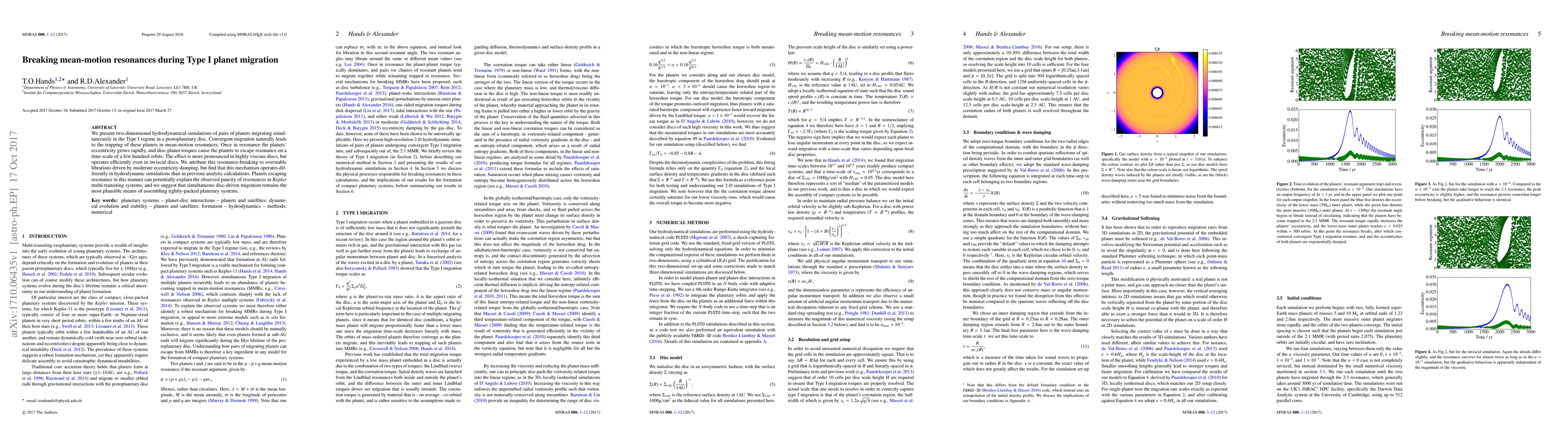 This paper uses hydrodynamical simulations to show that planets migrating simultaneously in a protoplanetary disc can break mean-motion resonances due to eccentricity growth and disc-planet torques, explaining the lack of observed resonances in multi-transiting systems. The resonance-breaking mechanism differs in simulations compared to analytic models.