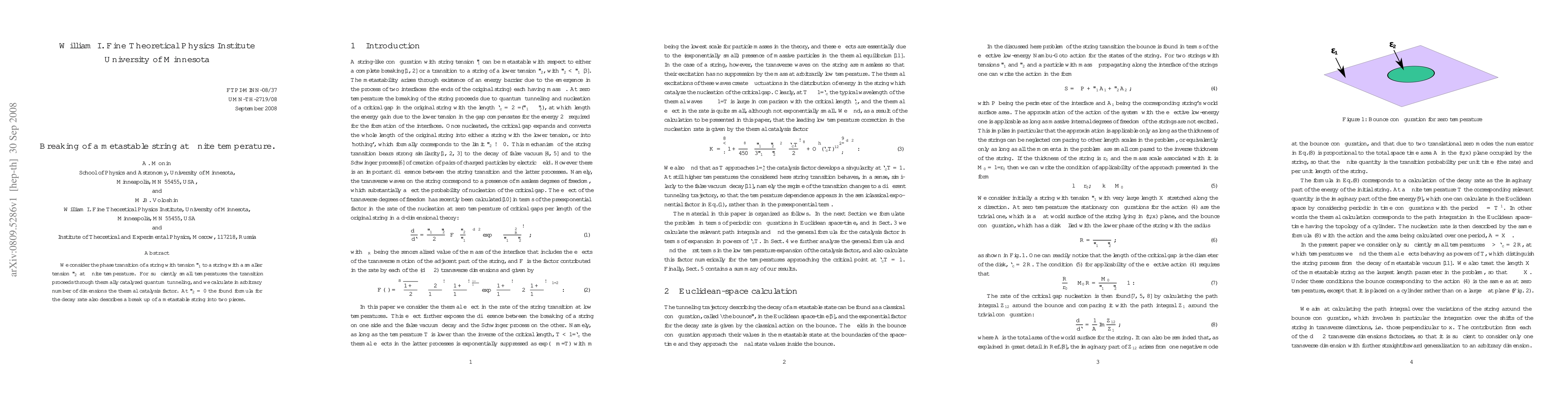 This paper examines the phase transition of a metastable string from higher to lower tension at finite temperature, detailing the thermally catalyzed quantum tunneling process and calculating the thermal catalysis factor in any number of dimensions. The derived decay rate formula also applies to the breakup of a tensionless string into two pieces.