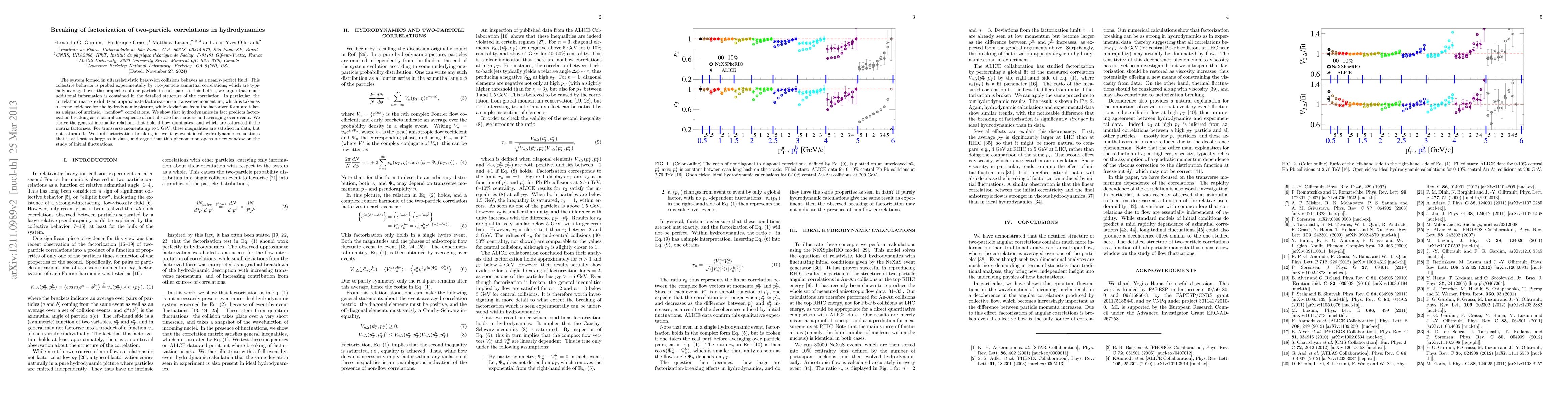 The system formed in ultrarelativistic heavy-ion collisions behaves as a nearly-perfect fluid. This collective behavior is probed experimentally by two-particle azimuthal correlations, which are typically averaged over the properties of one particle in each pair. In this Letter, we argue that much additional information is contained in the detailed structure of the correlation. In particular, the correlation matrix exhibits an approximate factorization in transverse momentum, which is taken as a strong evidence for the hydrodynamic picture, while deviations from the factorized form are taken as a signal of intrinsic, "nonflow" correlations. We show that hydrodynamics in fact predicts factorization breaking as a natural consequence of initial state fluctuations and averaging over events. We derive the general inequality relations that hold if flow dominates, and which are saturated if the matrix factorizes. For transverse momenta up to 5 GeV, these inequalities are satisfied in data, but not saturated. We find at least as large factorization breaking in event-by-event ideal hydrodynamic calculations as in data, and argue that this phenomenon opens a new window on the study of initial fluctuations.