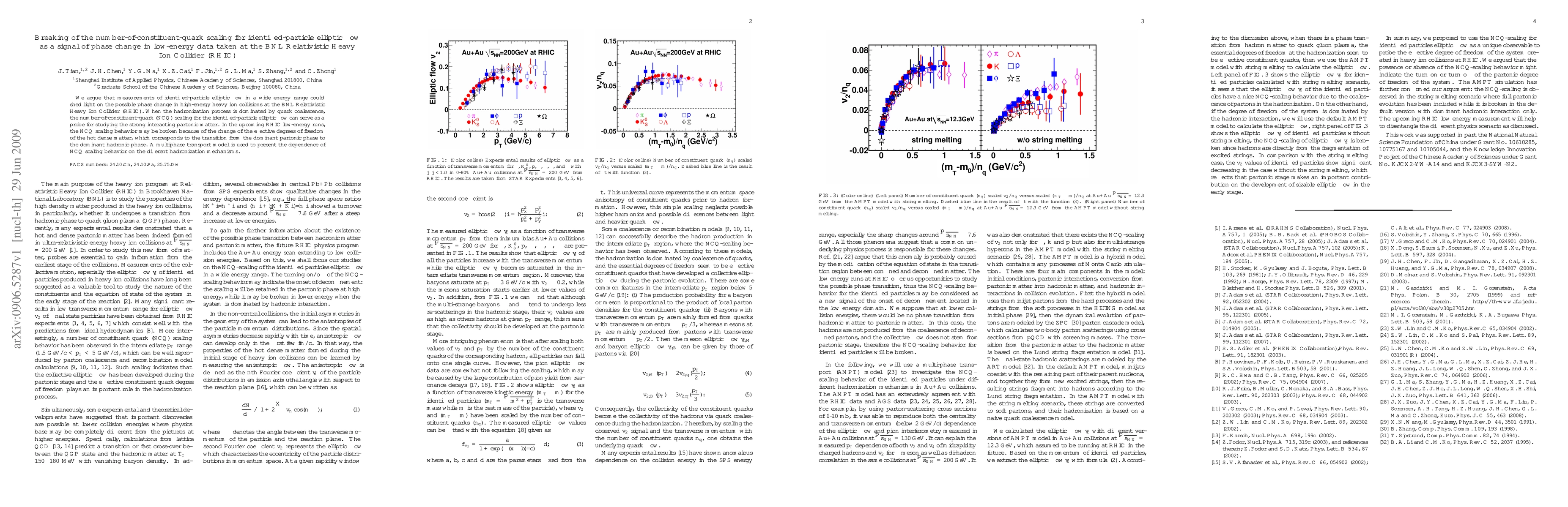 New research suggests that breaking of number-of-constituent-quark scaling in identified-particle elliptic flow at low-energy RHIC collisions may signal a phase change in the strong interacting matter. This phenomenon could be used to study the transition from partonic to hadronic phases.
