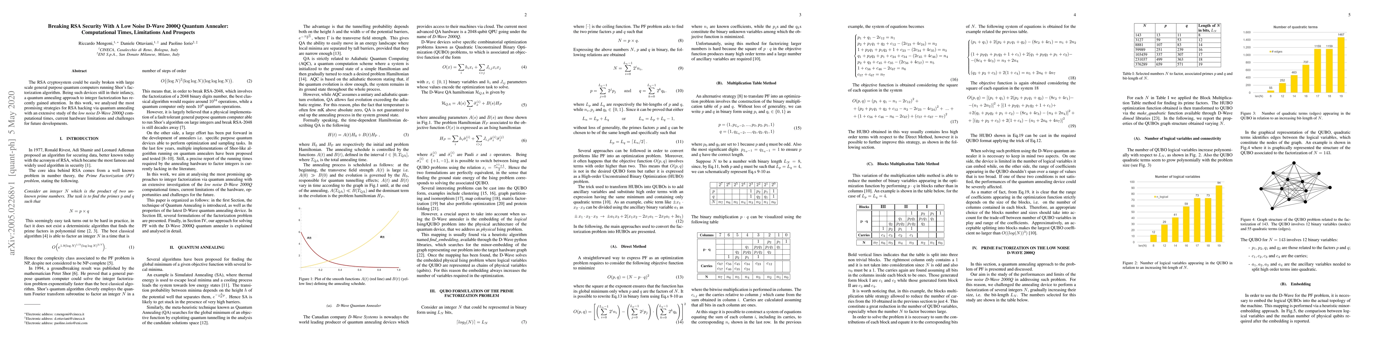 The RSA cryptosystem could be easily broken with large scale general purpose quantum computers running Shor's factorization algorithm. Being such devices still in their infancy, a quantum annealing approach to integer factorization has recently gained attention. In this work, we analyzed the most promising strategies for RSA hacking via quantum annealing with an extensive study of the low noise D-Wave 2000Q computational times, current hardware limitations and challenges for future developments.