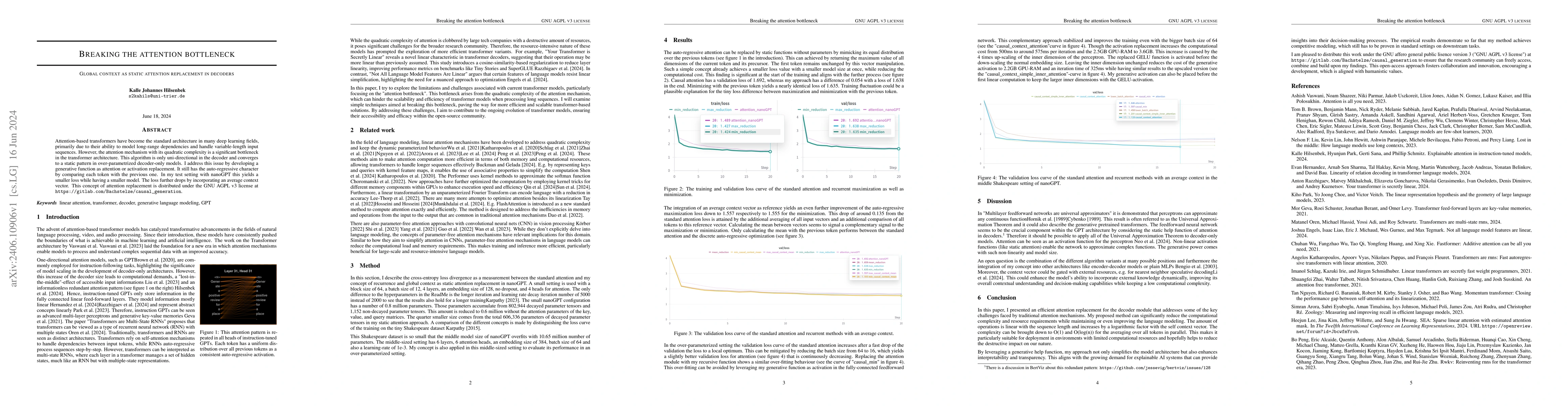 The paper proposes a novel method to replace the traditional attention mechanism in transformers to address their quadratic complexity. The suggested generative function maintains the auto-regressive property and, when tested with nanoGPT, resulted in reduced loss and smaller model sizes, further improved by an average context vector. The approach is freely distributed under the GNU AGPL v3 license.
