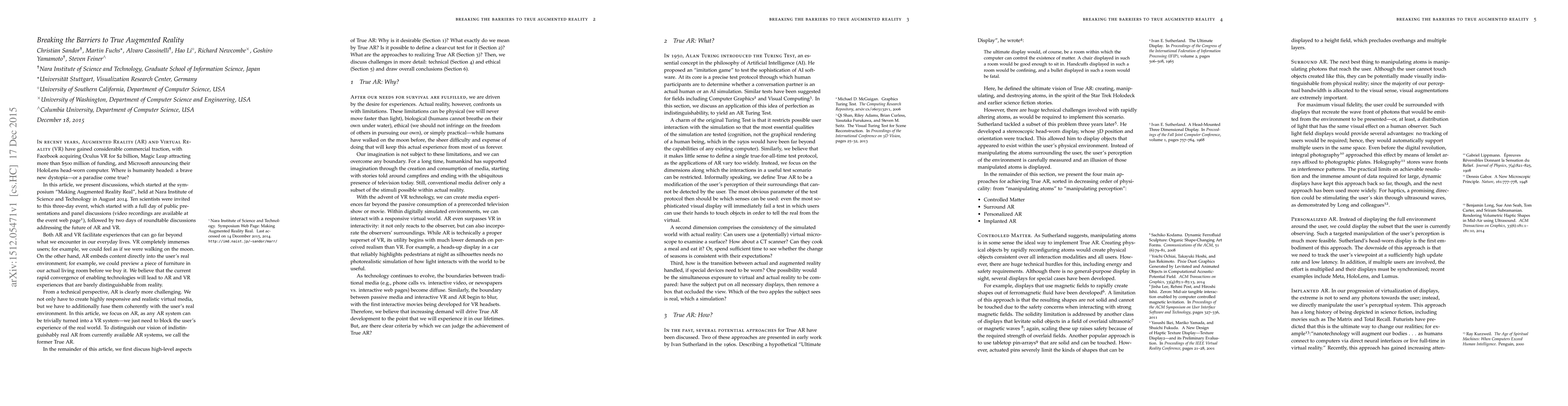 In recent years, Augmented Reality (AR) and Virtual Reality (VR) have gained considerable commercial traction, with Facebook acquiring Oculus VR for \$2 billion, Magic Leap attracting more than \$500 million of funding, and Microsoft announcing their HoloLens head-worn computer. Where is humanity headed: a brave new dystopia-or a paradise come true? In this article, we present discussions, which started at the symposium "Making Augmented Reality Real", held at Nara Institute of Science and Technology in August 2014. Ten scientists were invited to this three-day event, which started with a full day of public presentations and panel discussions (video recordings are available at the event web page), followed by two days of roundtable discussions addressing the future of AR and VR.