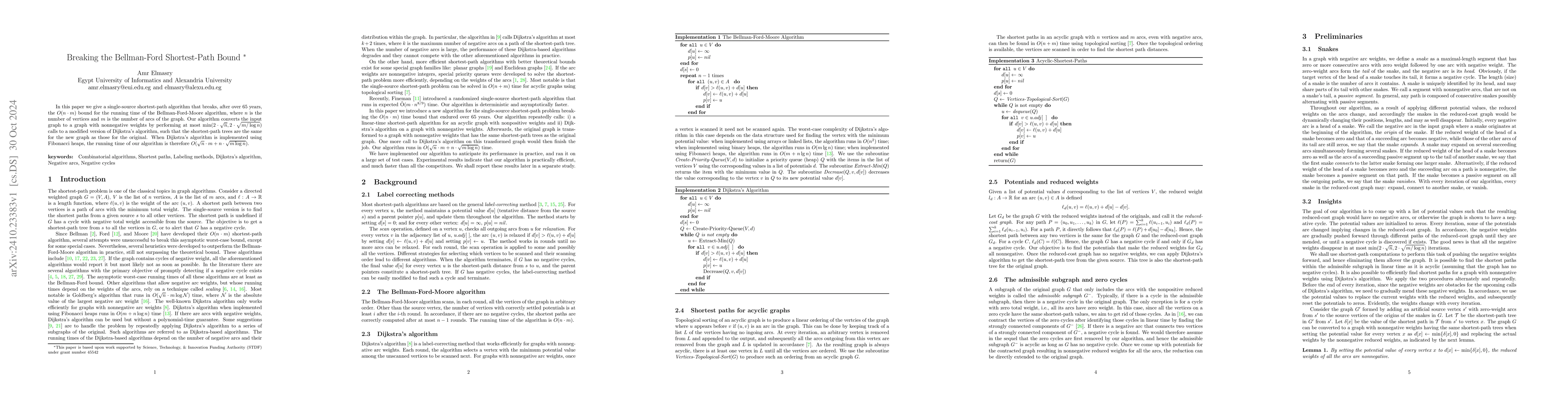 In this paper we give a single-source shortest-path algorithm that breaks, after over 65 years, the $O(n \cdot m)$ bound for the running time of the Bellman-Ford-Moore algorithm, where $n$ is the number of vertices and $m$ is the number of arcs of the graph. Our algorithm converts the input graph to a graph with nonnegative weights by performing at most $\min(2 \cdot \sqrt{n},2 \cdot \sqrt{m/\log n})$ calls to a modified version of Dijkstra's algorithm, such that the shortest-path trees are the same for the new graph as those for the original. When Dijkstra's algorithm is implemented using Fibonacci heaps, the running time of our algorithm is therefore $O(\sqrt{n} \cdot m + n \cdot \sqrt{m \log n})$.