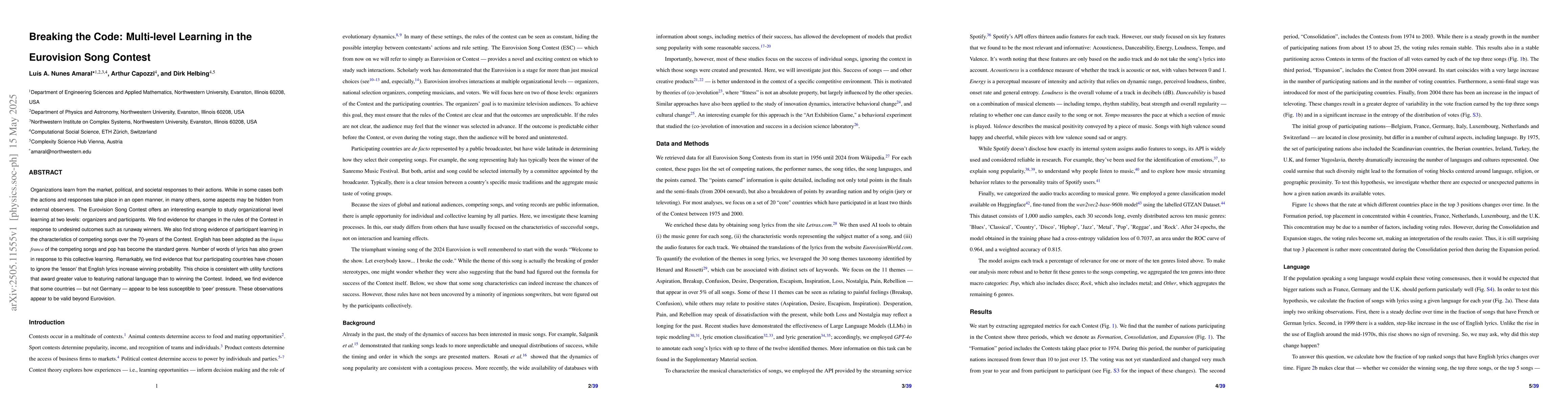 The research methodology isn't explicitly detailed in the provided content, but it involves analyzing changes in Eurovision Song Contest rules and song characteristics over 70 years.