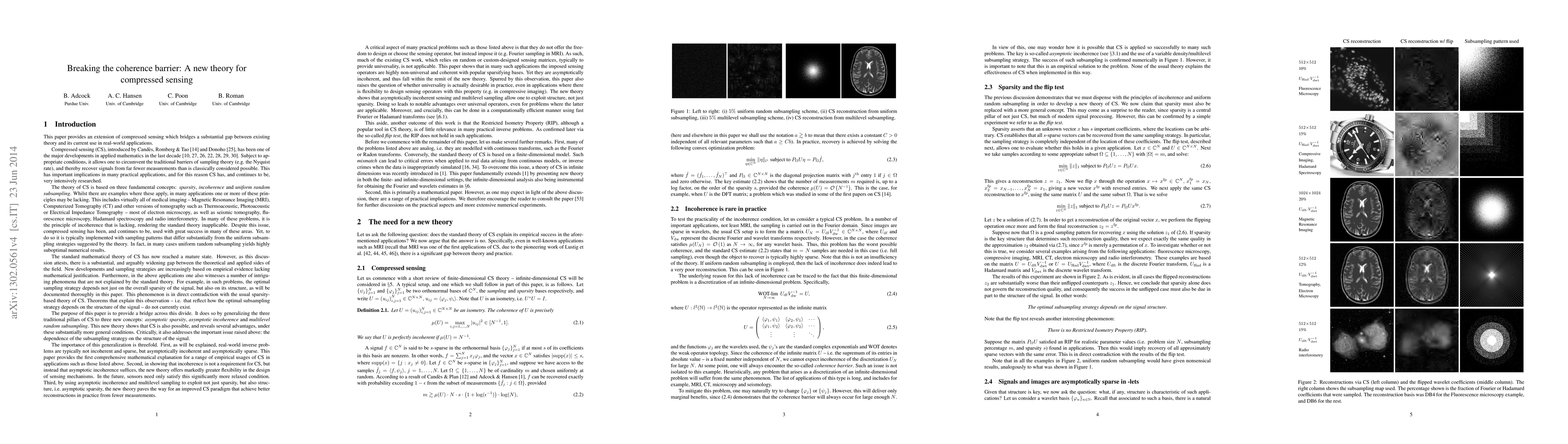 This paper provides an extension of compressed sensing which bridges a substantial gap between existing theory and its current use in real-world applications. It introduces a mathematical framework that generalizes the three standard pillars of compressed sensing - namely, sparsity, incoherence and uniform random subsampling - to three new concepts: asymptotic sparsity, asymptotic incoherence and multilevel random sampling. The new theorems show that compressed sensing is also possible, and reveals several advantages, under these substantially relaxed conditions. The importance of this is threefold. First, inverse problems to which compressed sensing is currently applied are typically coherent. The new theory provides the first comprehensive mathematical explanation for a range of empirical usages of compressed sensing in real-world applications, such as medical imaging, microscopy, spectroscopy and others. Second, in showing that compressed sensing does not require incoherence, but instead that asymptotic incoherence is sufficient, the new theory offers markedly greater flexibility in the design of sensing mechanisms. Third, by using asymptotic incoherence and multi-level sampling to exploit not just sparsity, but also structure, i.e. asymptotic sparsity, the new theory shows that substantially improved reconstructions can be obtained from fewer measurements.