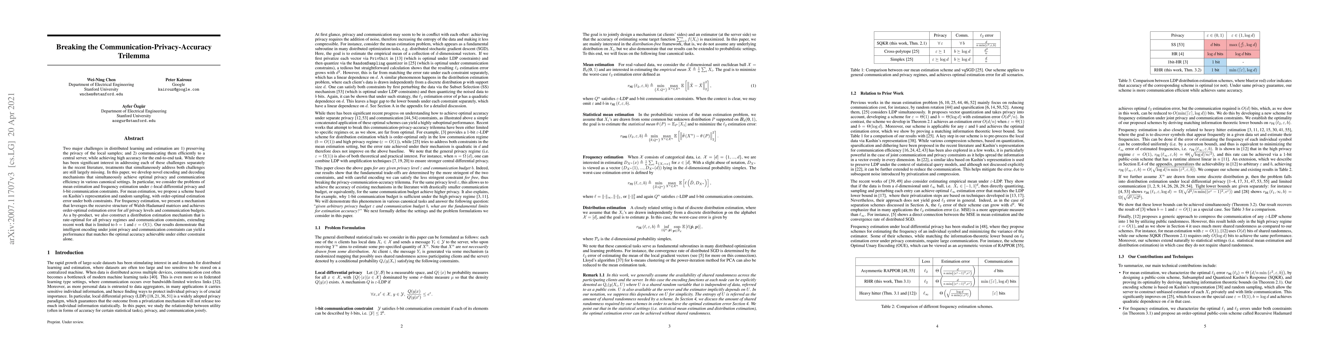 This paper introduces novel encoding and decoding mechanisms to achieve optimal privacy and communication efficiency in distributed learning and estimation, addressing mean and frequency estimation under local differential privacy and bit communication constraints. The proposed schemes achieve order-optimal accuracy, demonstrating that intelligent encoding under joint constraints can yield performance comparable to optimal accuracy under individual constraints.