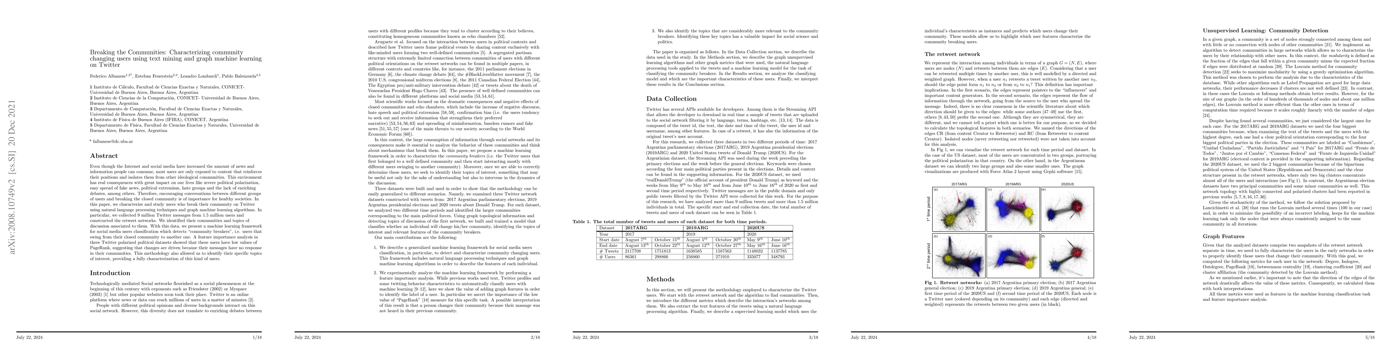 This paper develops a machine learning framework to identify "community breakers" on Twitter, users who shift between different ideological groups. By analyzing 9 million tweets from 1.5 million users, the study reveals that these users often have low PageRank, indicating their messages rarely receive responses, and characterizes their unique discussion topics.