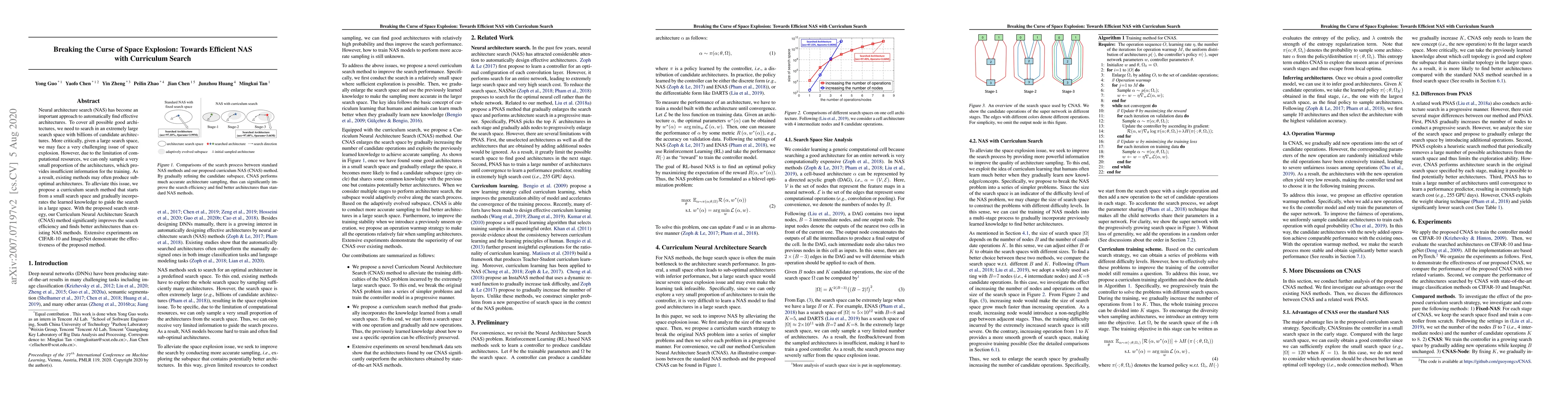 Neural architecture search (NAS) has become an important approach to automatically find effective architectures. To cover all possible good architectures, we need to search in an extremely large search space with billions of candidate architectures. More critically, given a large search space, we may face a very challenging issue of space explosion. However, due to the limitation of computational resources, we can only sample a very small proportion of the architectures, which provides insufficient information for the training. As a result, existing methods may often produce suboptimal architectures. To alleviate this issue, we propose a curriculum search method that starts from a small search space and gradually incorporates the learned knowledge to guide the search in a large space. With the proposed search strategy, our Curriculum Neural Architecture Search (CNAS) method significantly improves the search efficiency and finds better architectures than existing NAS methods. Extensive experiments on CIFAR-10 and ImageNet demonstrate the effectiveness of the proposed method.