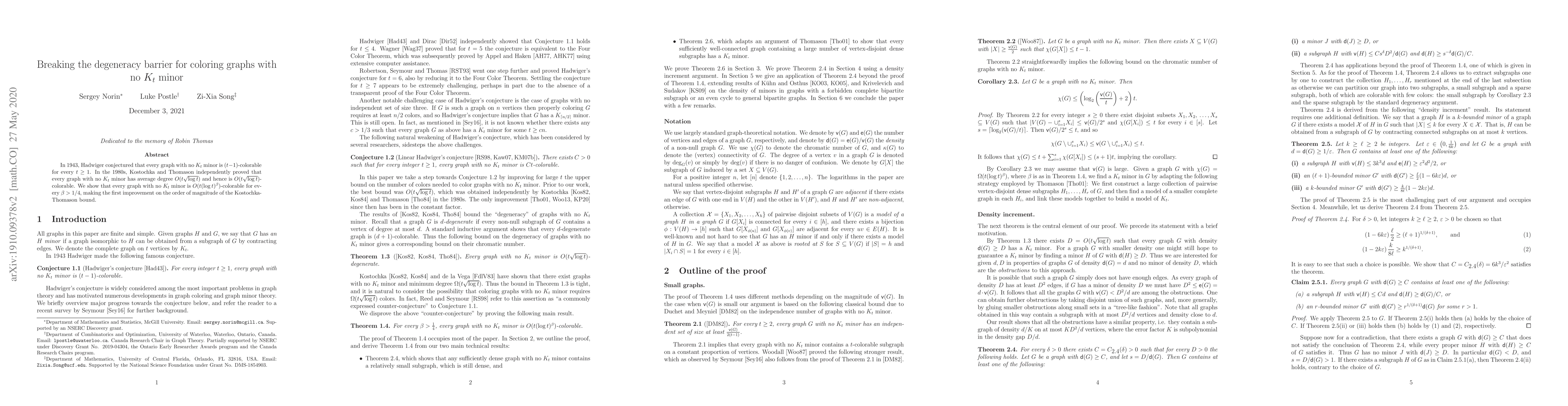 In 1943, Hadwiger conjectured that every graph with no $K_t$ minor is $(t-1)$-colorable for every $t\geq 1$. In the 1980s, Kostochka and Thomason independently proved that every graph with no $K_t$ minor has average degree $O(t\sqrt{\log t})$ and hence is $O(t\sqrt{\log t})$-colorable. We show that every graph with no $K_t$ minor is $O(t(\log t)^{\beta})$-colorable for every $\beta > 1/4$, making the first improvement on the order of magnitude of the Kostochka-Thomason bound.