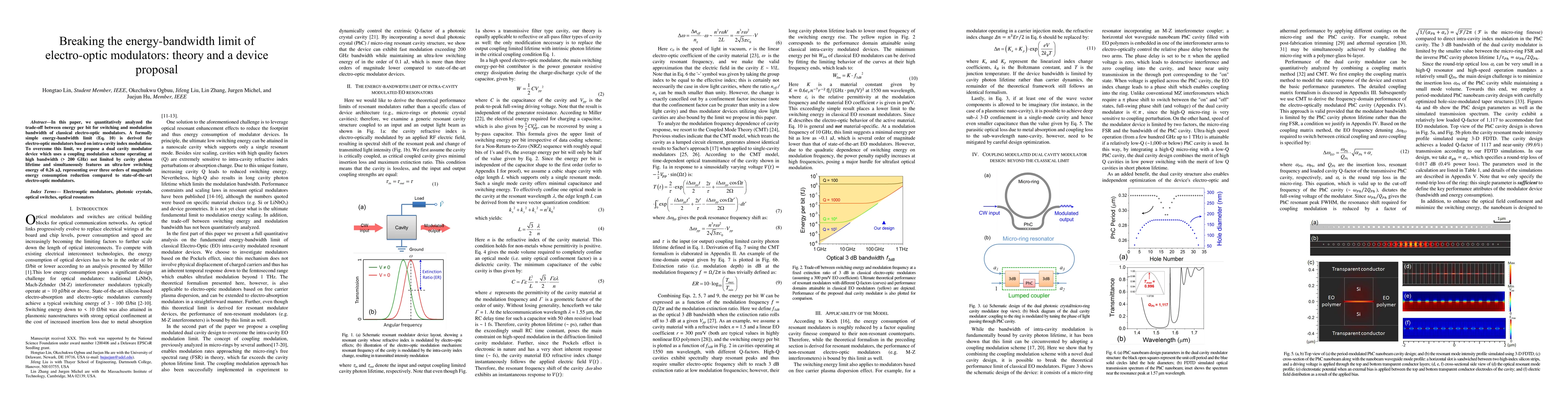 This paper quantitatively analyzes the energy-bandwidth trade-off in classical electro-optic modulators and proposes a dual cavity modulator device that significantly reduces switching energy to 0.26 aJ while achieving modulation bandwidths exceeding 200 GHz, surpassing existing limits.