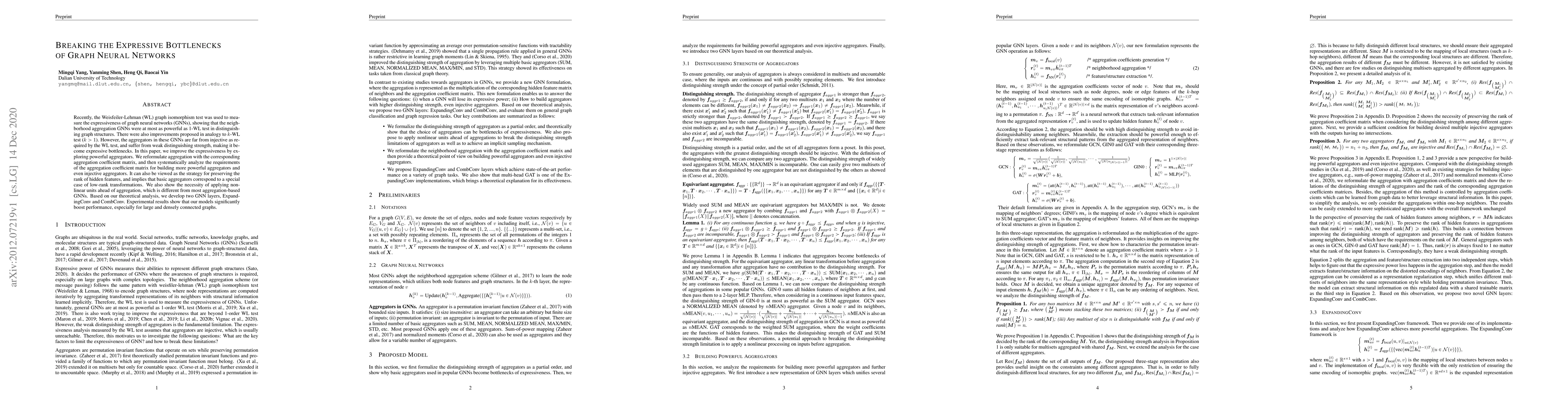 Recently, the Weisfeiler-Lehman (WL) graph isomorphism test was used to measure the expressiveness of graph neural networks (GNNs), showing that the neighborhood aggregation GNNs were at most as powerful as 1-WL test in distinguishing graph structures. There were also improvements proposed in analogy to $k$-WL test ($k>1$). However, the aggregators in these GNNs are far from injective as required by the WL test, and suffer from weak distinguishing strength, making it become expressive bottlenecks. In this paper, we improve the expressiveness by exploring powerful aggregators. We reformulate aggregation with the corresponding aggregation coefficient matrix, and then systematically analyze the requirements of the aggregation coefficient matrix for building more powerful aggregators and even injective aggregators. It can also be viewed as the strategy for preserving the rank of hidden features, and implies that basic aggregators correspond to a special case of low-rank transformations. We also show the necessity of applying nonlinear units ahead of aggregation, which is different from most aggregation-based GNNs. Based on our theoretical analysis, we develop two GNN layers, ExpandingConv and CombConv. Experimental results show that our models significantly boost performance, especially for large and densely connected graphs.