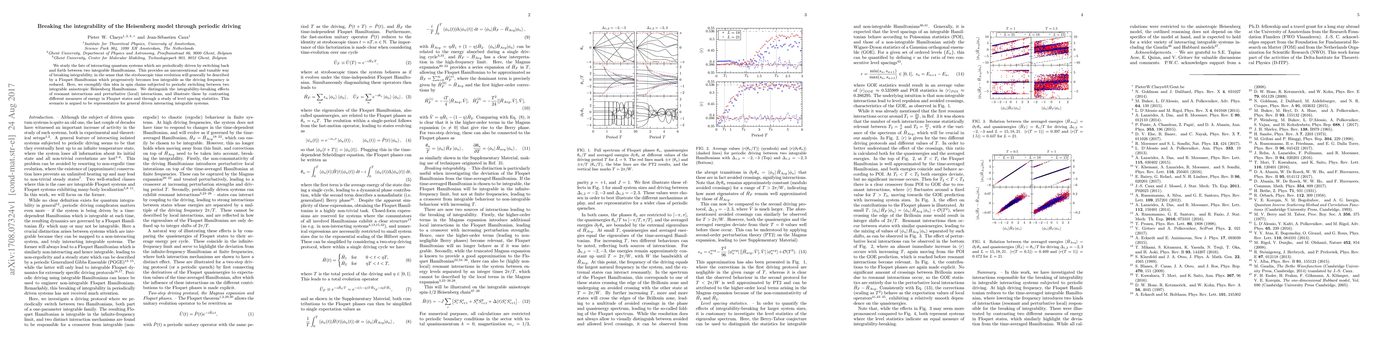We study the fate of interacting quantum systems which are periodically driven by switching back and forth between two integrable Hamiltonians. This provides an unconventional and tunable way of breaking integrability, in the sense that the stroboscopic time evolution will generally be described by a Floquet Hamiltonian which progressively becomes less integrable as the driving frequency is reduced. Here, we exemplify this idea in spin chains subjected to periodic switching between two integrable anisotropic Heisenberg Hamiltonians. We distinguish the integrability-breaking effects of resonant interactions and perturbative (local) interactions, and illustrate these by contrasting different measures of energy in Floquet states and through a study of level spacing statistics. This scenario is argued to be representative for general driven interacting integrable systems.