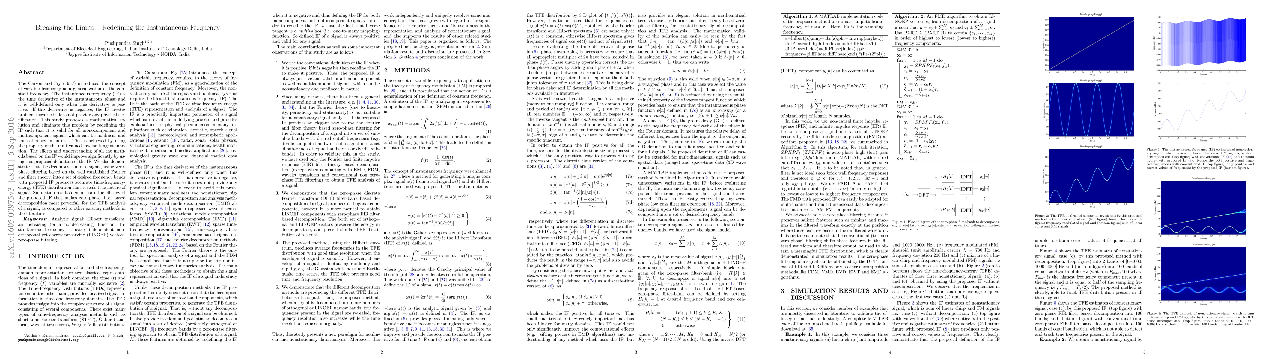 This research proposes a redefinition of instantaneous frequency (IF) to address its limitations with negative derivatives, applicable to monocomponent and multicomponent signals. Utilizing the multivalued inverse tangent function, the new IF definition improves signal decomposition accuracy and TFE analysis, surpassing existing methods.