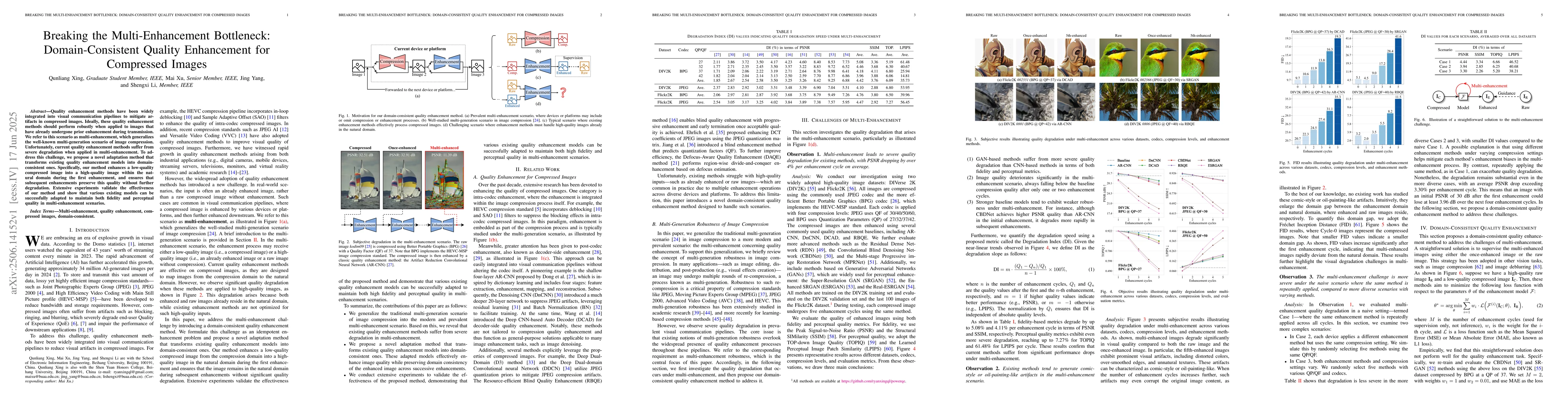 Quality enhancement methods have been widely integrated into visual communication pipelines to mitigate artifacts in compressed images. Ideally, these quality enhancement methods should perform robustly when applied to images that have already undergone prior enhancement during transmission. We refer to this scenario as multi-enhancement, which generalizes the well-known multi-generation scenario of image compression. Unfortunately, current quality enhancement methods suffer from severe degradation when applied in multi-enhancement. To address this challenge, we propose a novel adaptation method that transforms existing quality enhancement models into domain-consistent ones. Specifically, our method enhances a low-quality compressed image into a high-quality image within the natural domain during the first enhancement, and ensures that subsequent enhancements preserve this quality without further degradation. Extensive experiments validate the effectiveness of our method and show that various existing models can be successfully adapted to maintain both fidelity and perceptual quality in multi-enhancement scenarios.