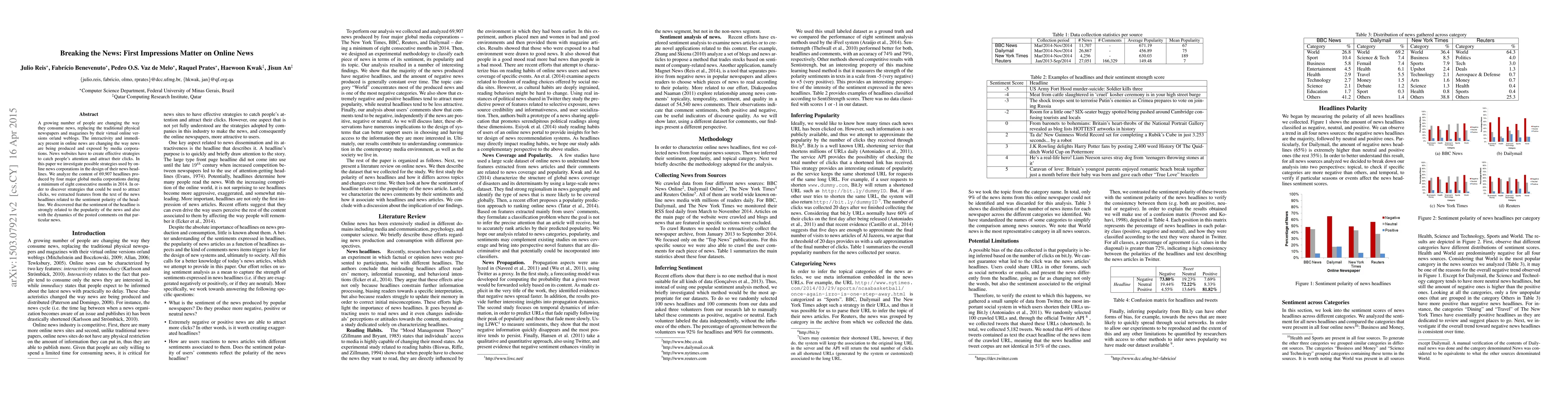 A growing number of people are changing the way they consume news, replacing the traditional physical newspapers and magazines by their virtual online versions or/and weblogs. The interactivity and immediacy present in online news are changing the way news are being produced and exposed by media corporations. News websites have to create effective strategies to catch people's attention and attract their clicks. In this paper we investigate possible strategies used by online news corporations in the design of their news headlines. We analyze the content of 69,907 headlines produced by four major global media corporations during a minimum of eight consecutive months in 2014. In order to discover strategies that could be used to attract clicks, we extracted features from the text of the news headlines related to the sentiment polarity of the headline. We discovered that the sentiment of the headline is strongly related to the popularity of the news and also with the dynamics of the posted comments on that particular news.