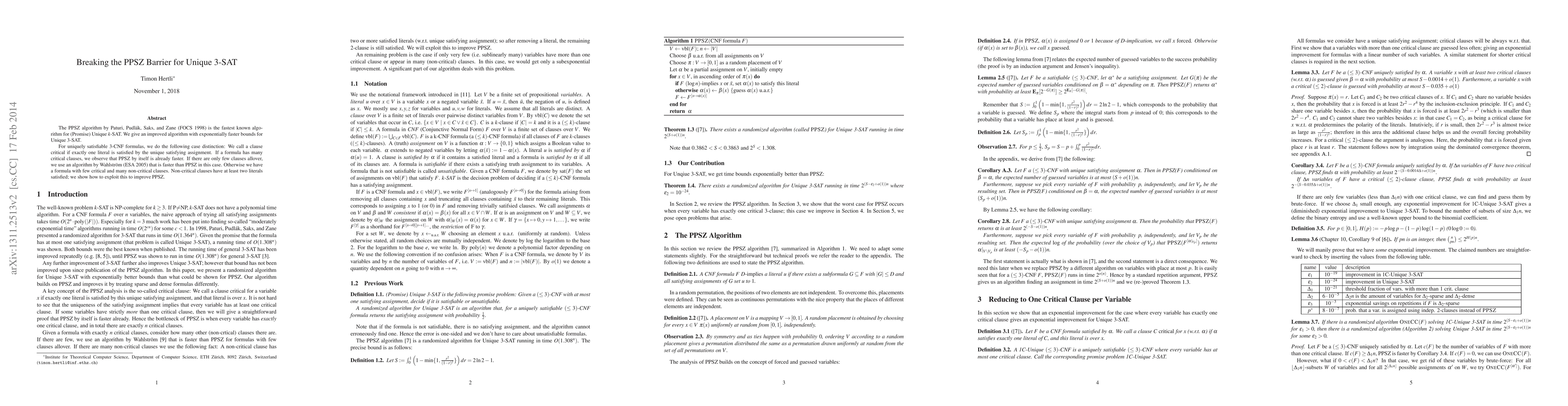 This paper presents an improved algorithm for solving Unique 3-SAT, surpassing the previously fastest PPSZ algorithm. The authors distinguish cases based on the number of critical clauses, leveraging Wahlström's algorithm when few clauses exist and enhancing PPSZ for formulas with few critical but many non-critical clauses.