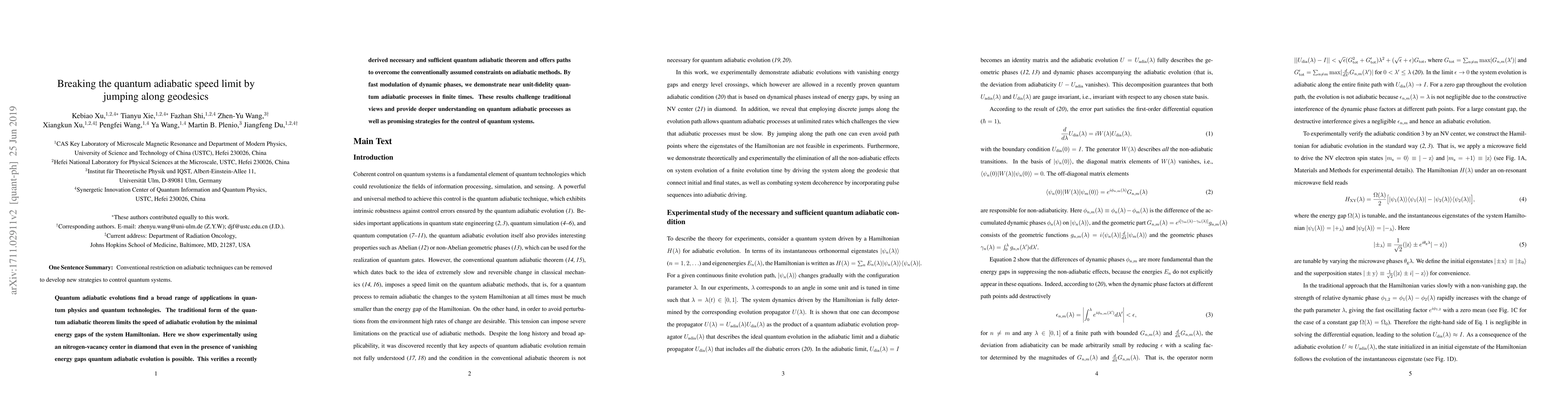 This paper experimentally demonstrates that quantum adiabatic evolution can proceed even when energy gaps vanish, using a nitrogen-vacancy center in diamond. It verifies a new quantum adiabatic theorem and shows that adiabatic processes can achieve near-unit fidelity in finite time, challenging traditional speed limits and offering new strategies for quantum system control.