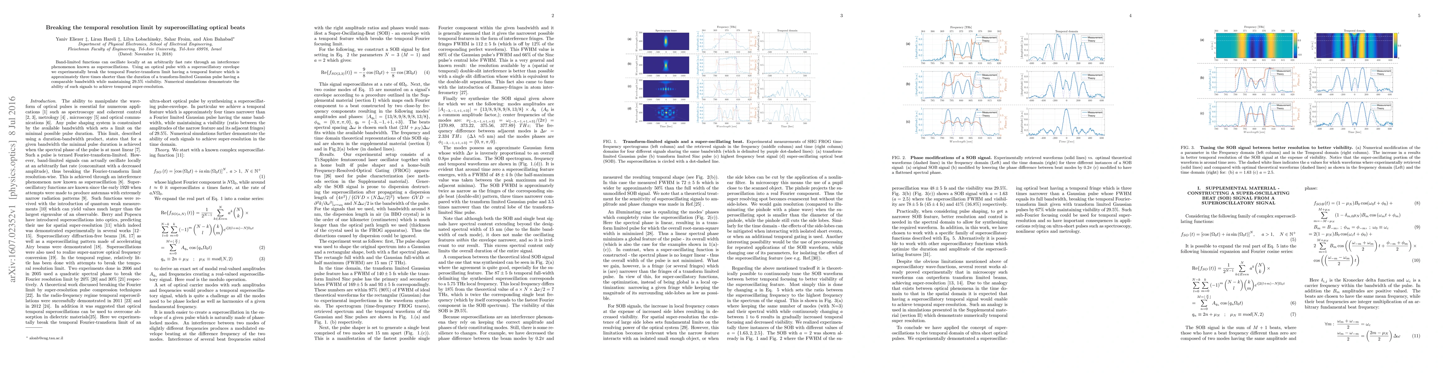 Band-limited functions can oscillate locally at an arbitrarily fast rate through an interference phenomenon known as superoscillations. Using an optical pulse with a superoscillatory envelope we experimentally break the temporal Fourier-transform limit having a temporal feature which is approximately three times shorter than the duration of a transform-limited Gaussian pulse having a comparable bandwidth while maintaining $29.5\%$ visibility. Numerical simulations demonstrate the ability of such signals to achieve temporal super-resolution.