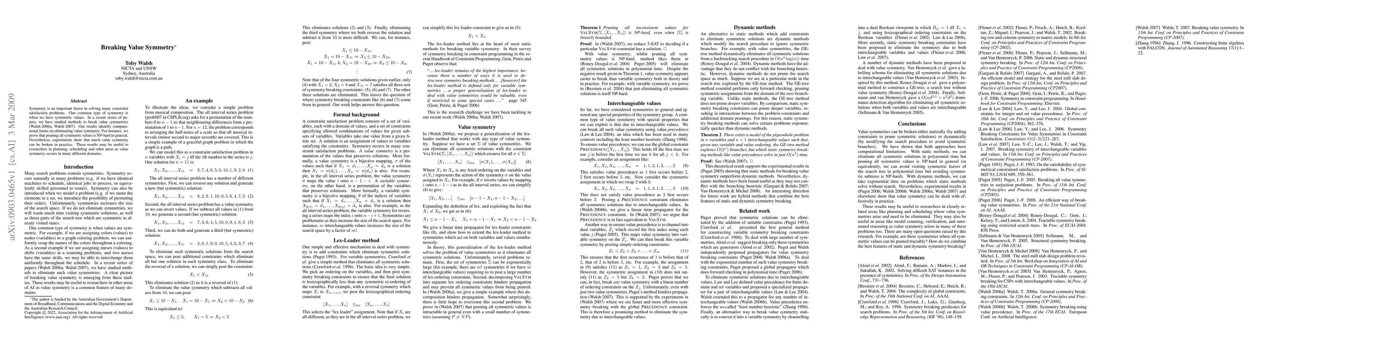 Researchers found that breaking value symmetry in constraint satisfaction problems is computationally limited, but experiments show it can often be done in practice, with potential applications in planning and scheduling.