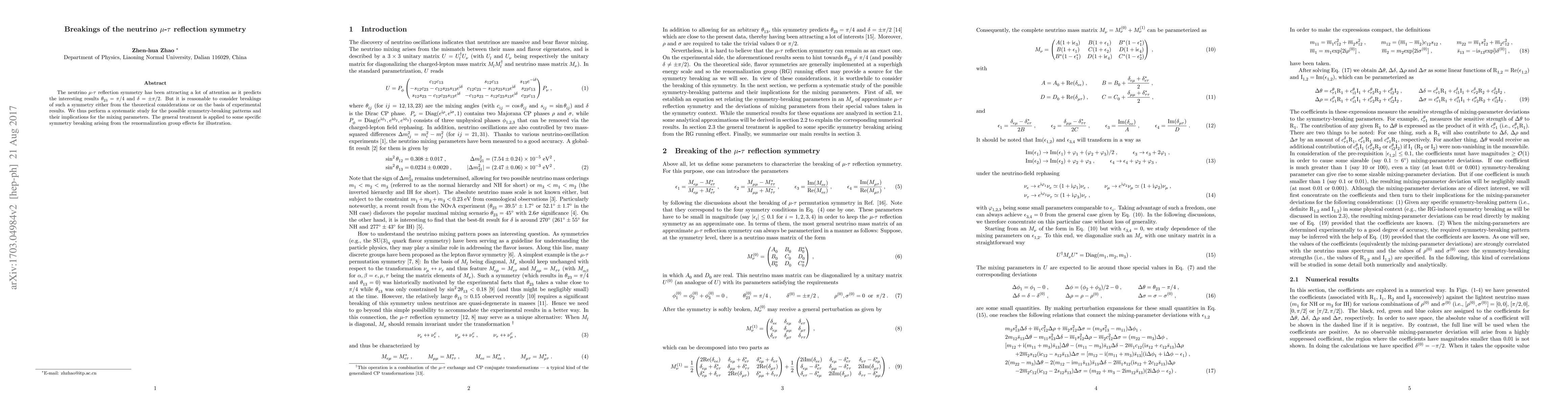 This paper investigates the potential breaking of the neutrino $\mu$-$\tau$ reflection symmetry, exploring its implications for mixing parameters, and examines specific symmetry-breaking scenarios, including those arising from renormalization group effects.