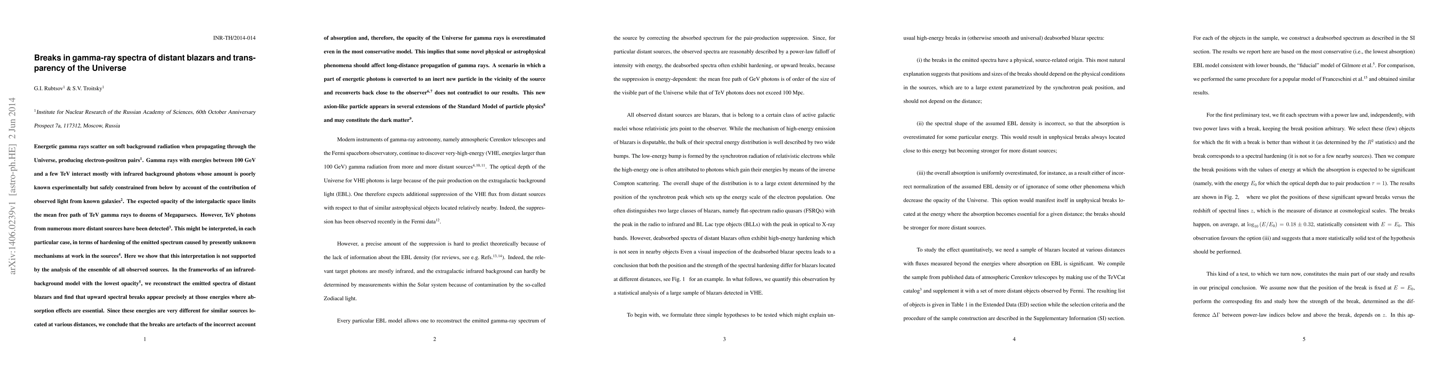 A study of gamma-ray spectra from distant blazars found that breaks in the spectrum are likely artefacts of absorption effects, suggesting the universe's opacity for gamma rays is overestimated. This implies novel astrophysical phenomena may affect long-distance gamma ray propagation.