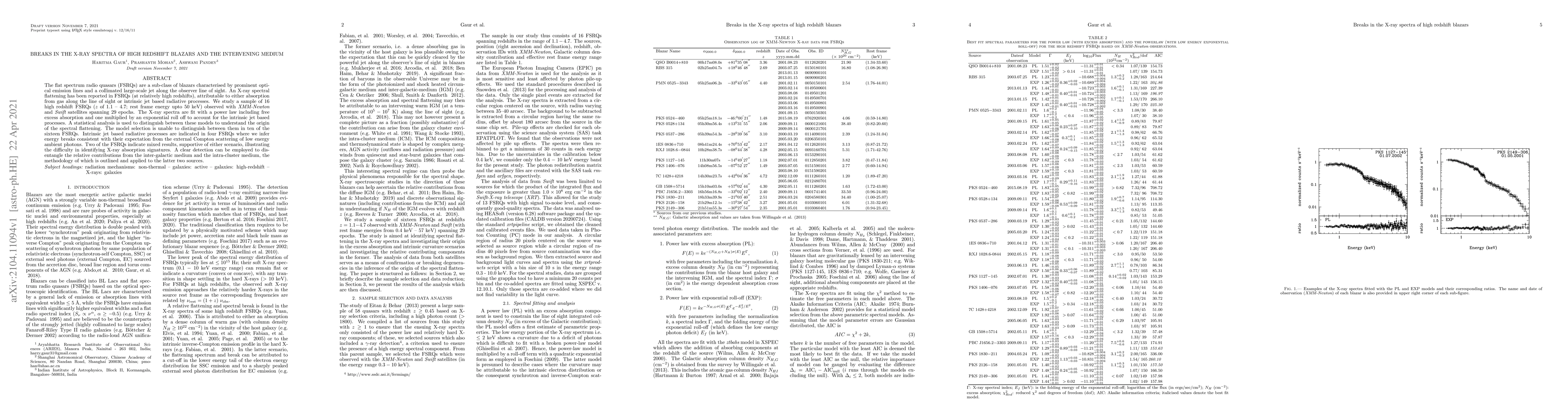 The study examines 16 high redshift FSRQs, finding that 4 show evidence of intrinsic jet-based X-ray spectral breaks, while 10 show inconclusive results, and 2 indicate mixed scenarios. The research highlights the challenge in distinguishing between X-ray absorption from intervening gas and intrinsic jet processes, and suggests a method to differentiate contributions from inter-galactic and intra-cluster medium.