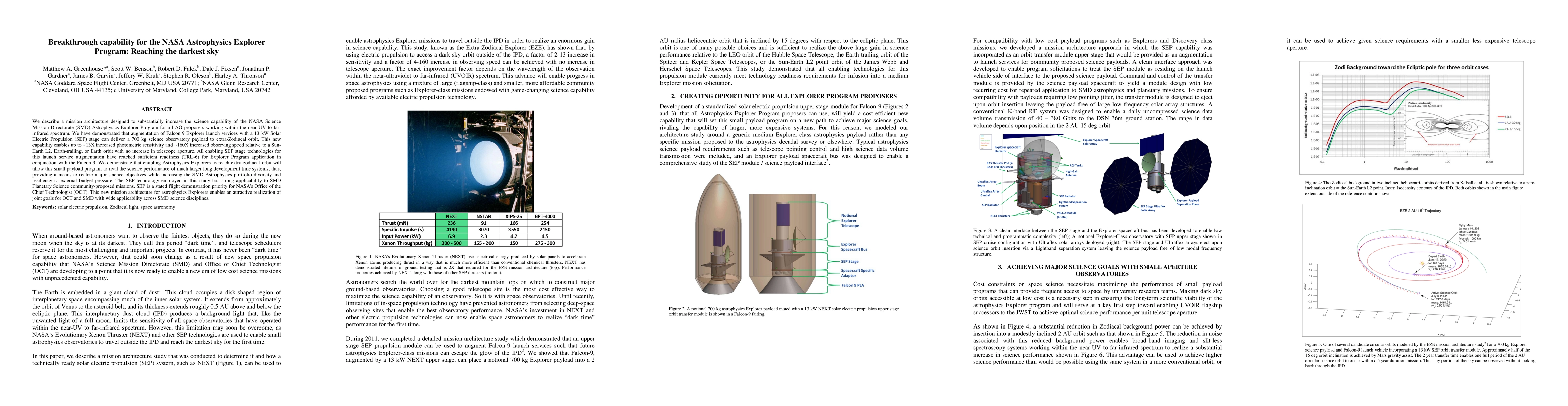 This paper outlines a mission architecture that enhances the NASA Astrophysics Explorer Program by utilizing Falcon 9 launch services augmented with a 13 kW Solar Electric Propulsion stage, enabling a 700 kg payload to reach extra-Zodiacal orbit. This new capability offers significant improvements in photometric sensitivity and observing speed without increasing telescope size.
