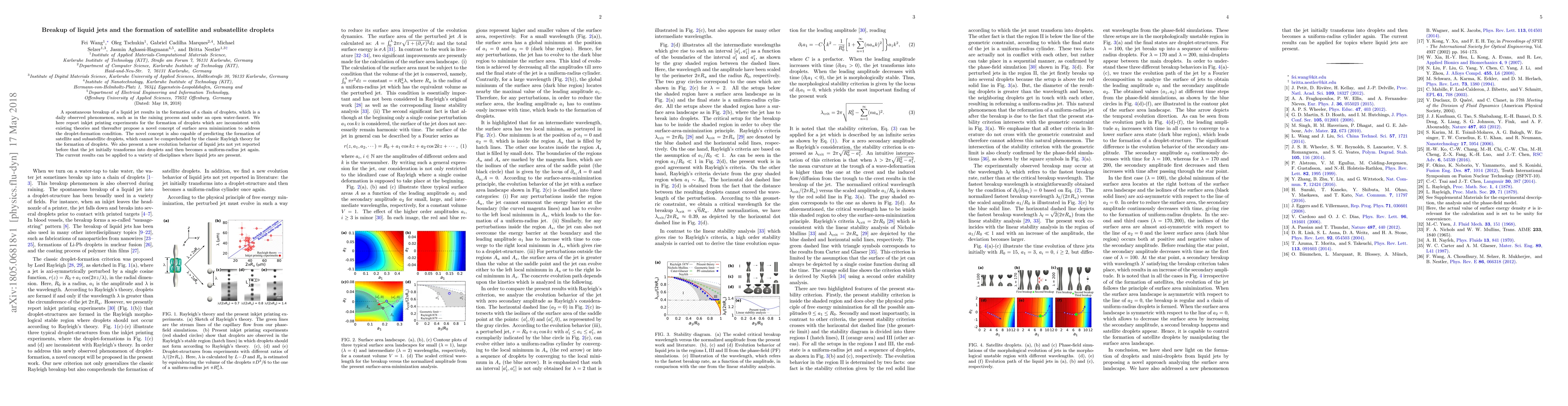 This research explores the unconventional breakup of liquid jets in inkjet printing, revealing new droplet formation conditions that challenge existing theories. A novel concept of surface area minimization is proposed to explain the phenomenon, including the formation of satellite and subsatellite droplets, and identifies a previously unreported evolution behavior where jets transform into droplets then revert to a uniform radius.