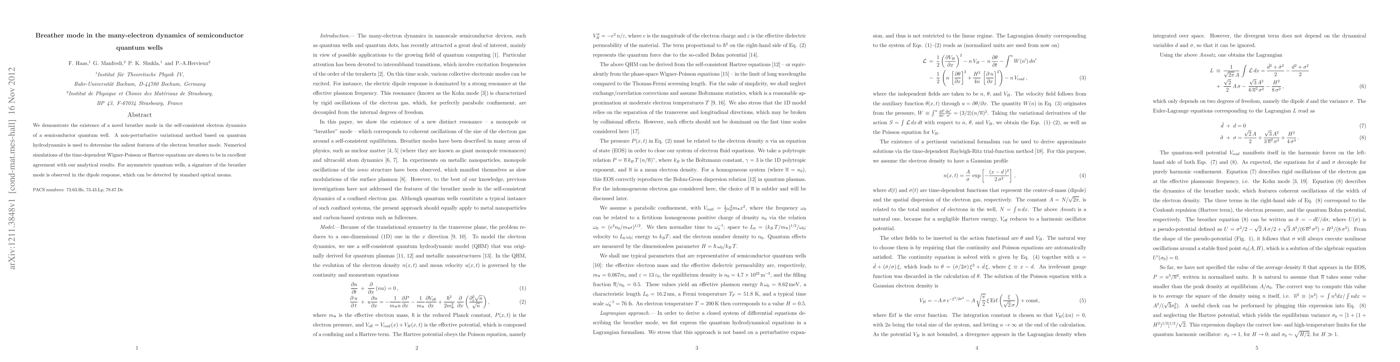 We demonstrate the existence of a novel breather mode in the self-consistent electron dynamics of a semiconductor quantum well. A non-perturbative variational method based on quantum hydrodynamics is used to determine the salient features of the electron breather mode. Numerical simulations of the time-dependent Wigner-Poisson or Hartree equations are shown to be in excellent agreement with our analytical results. For asymmetric quantum wells, a signature of the breather mode is observed in the dipole response, which can be detected by standard optical means.
