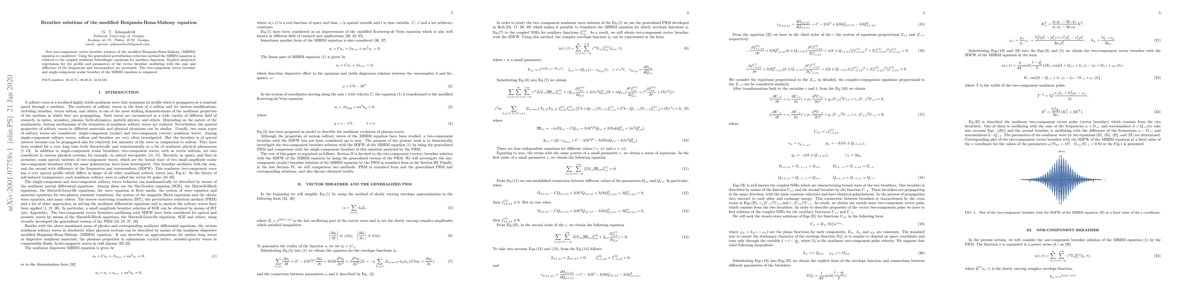 This paper presents a new two-component vector breather solution for the modified Benjamin-Bona-Mahony equation using the generalized perturbation reduction method, which reduces the equation to coupled nonlinear Schrödinger equations. The study provides explicit analytical expressions for the breather's profile and parameters.