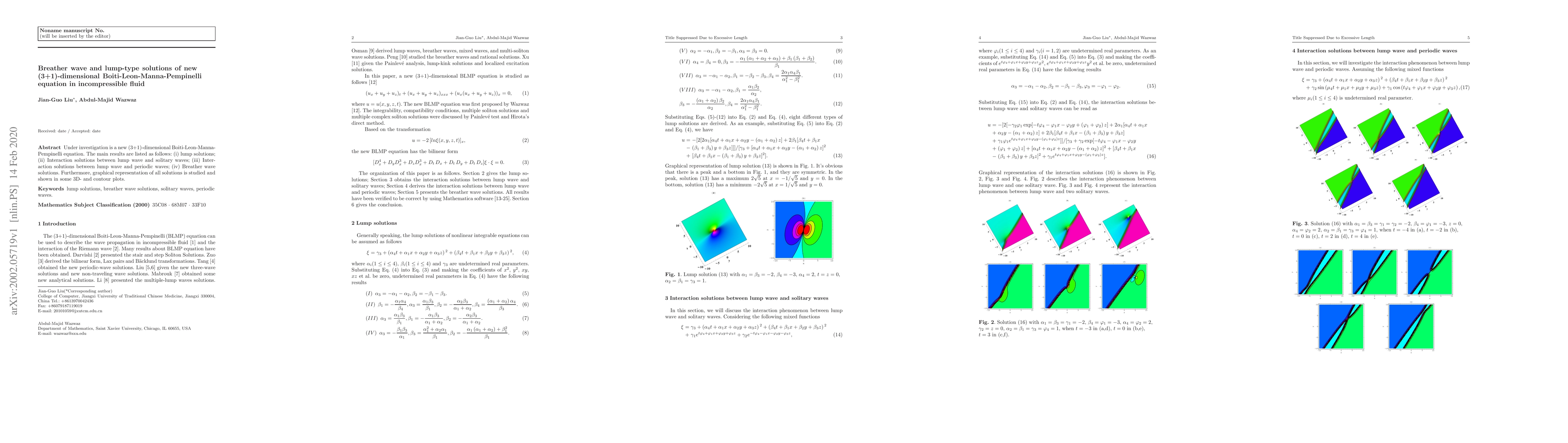 This research investigates new (3+1)-dimensional Boiti-Leon-Manna-Pempinelli equations, revealing lump, interaction, and breather wave solutions. The study provides graphical representations of these solutions through 3D and contour plots.